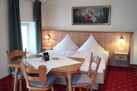 Gemütliches, helles, großes Gästezimmer mit Sitzecke und direktem Zugang zum Balkon, sowie Dusche und WC.