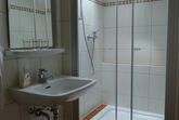 Haus I: FeWo 2: Gemütlich eingerichtete Wohnung bis 4 Personen, Wohnzimmer mit Kochnische, 2 Schlafzimmer mit jeweils DU/WC sowie separatem WC, WLAN, großer Südbalkon.