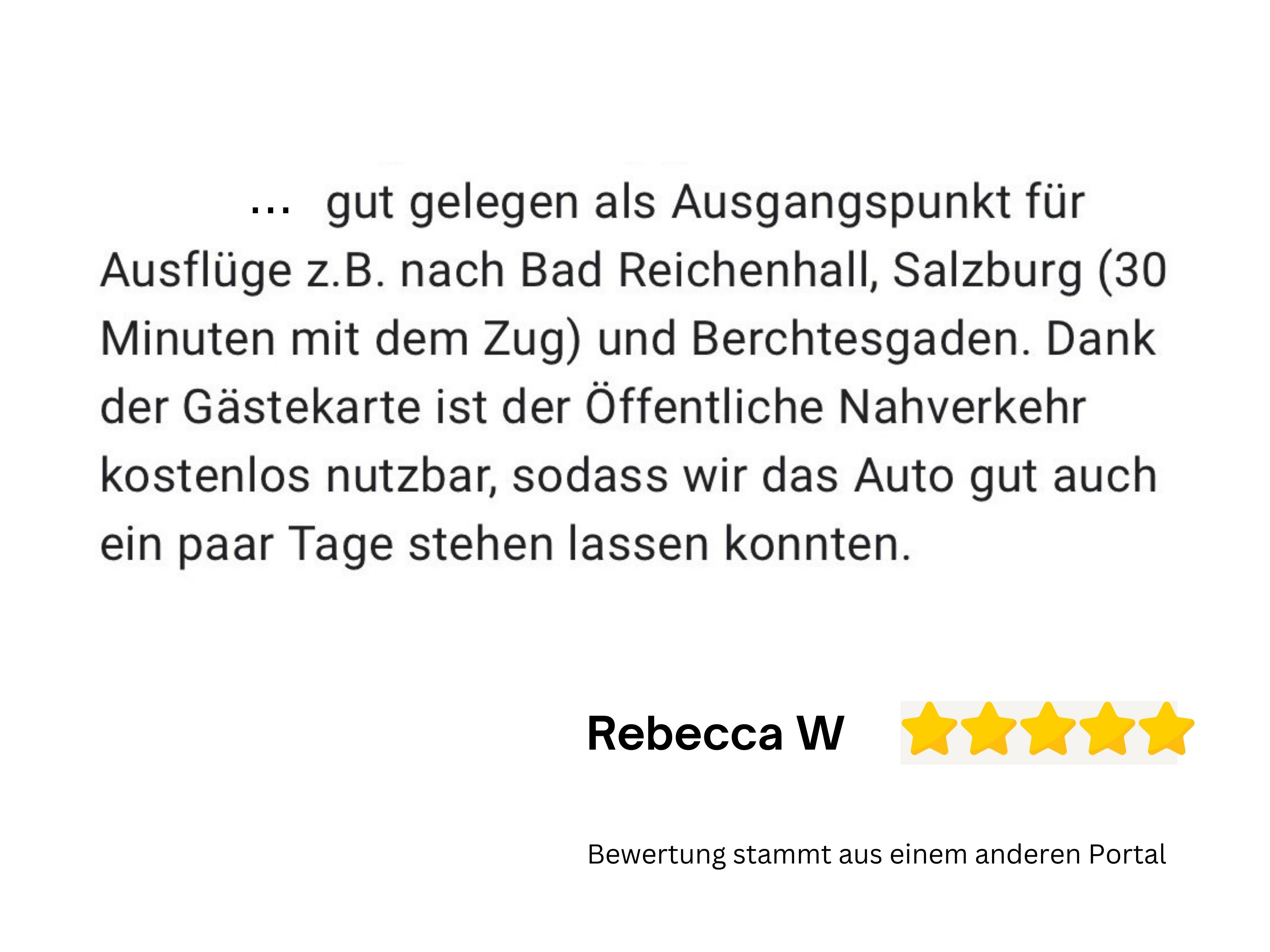 Einkaufsmöglichkeiten befinden sich in nächster Nähe (500 m). In der Umgebung finden Sie viele Sehenswürdigkeiten, Freizeitangebote und Ausflugsziele wie Königsee, Salzburg, Bad Reichenhall oder Chiemsee). Der große und überdachte Balkon ist zum Süden bzw. Westen ausgerichtet. Um Ihren Aufenthalt perfekt zu machen, gehören kostenloses WLAN/WiFi sowie ein Bluetooth-/Internet-Radio ebenfalls zur Ausstattung. Sie werden ankommen und sich sofort wohl und wie zuhause fühlen! Wir freuen uns auf Sie!