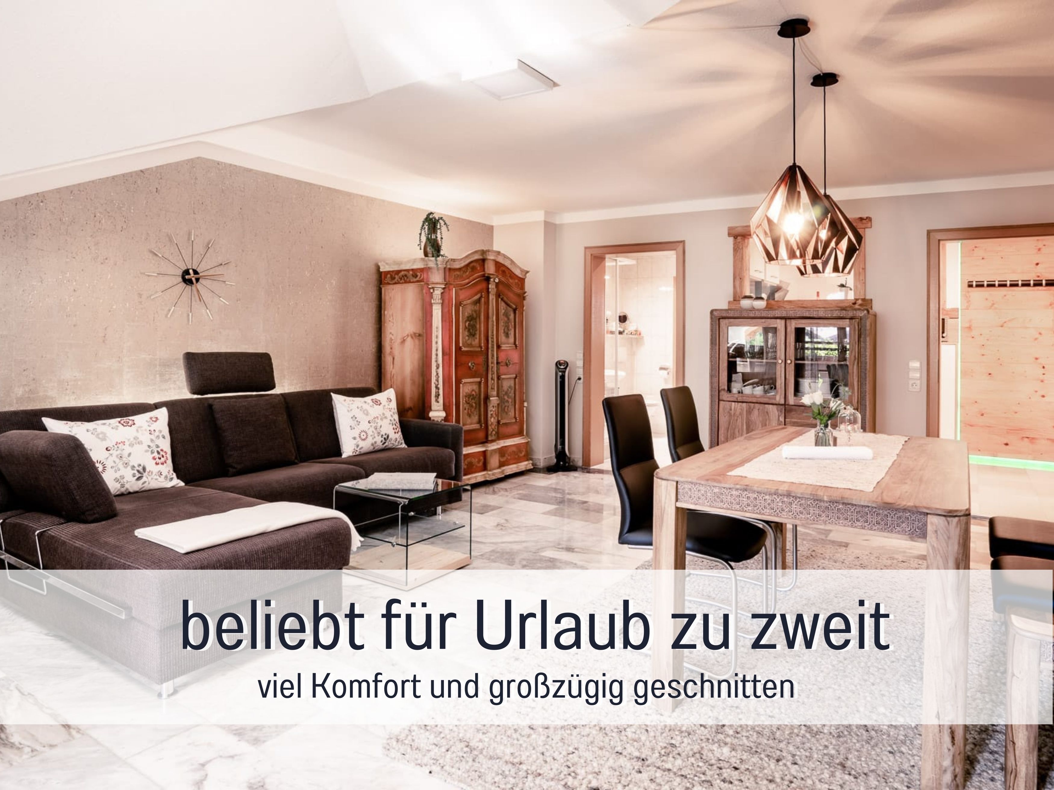 Panorama-Bergblick-Ferienwohnungen in bester Lage, top ausgestattet und äußerst gepflegt! Das Haus in ruhiger, sonniger und zentraler Lage bietet zwei stilvolle, sehr gepflegte und großzügige 5 Sterne-Ferienwohnungen für 2 Personen. Die Wohnungen sind nicht nur modern und gemütlich eingerichtet. Sie verwöhnen auch mit einem atemberaubenden Ausblick auf die Berchtesgadener Alpen bzw. auf Schloss Staufenblick und den Pidinger Hausberg, den „Hochstaufen“. Die Wohnungen sind bestens ausgestattet, es fehlt an nichts. Unsere Gäste schätzen die herzliche Atmosphäre und die besondere Sauberkeit und fühlen sich im Urlaub sofort wie Zuhause.