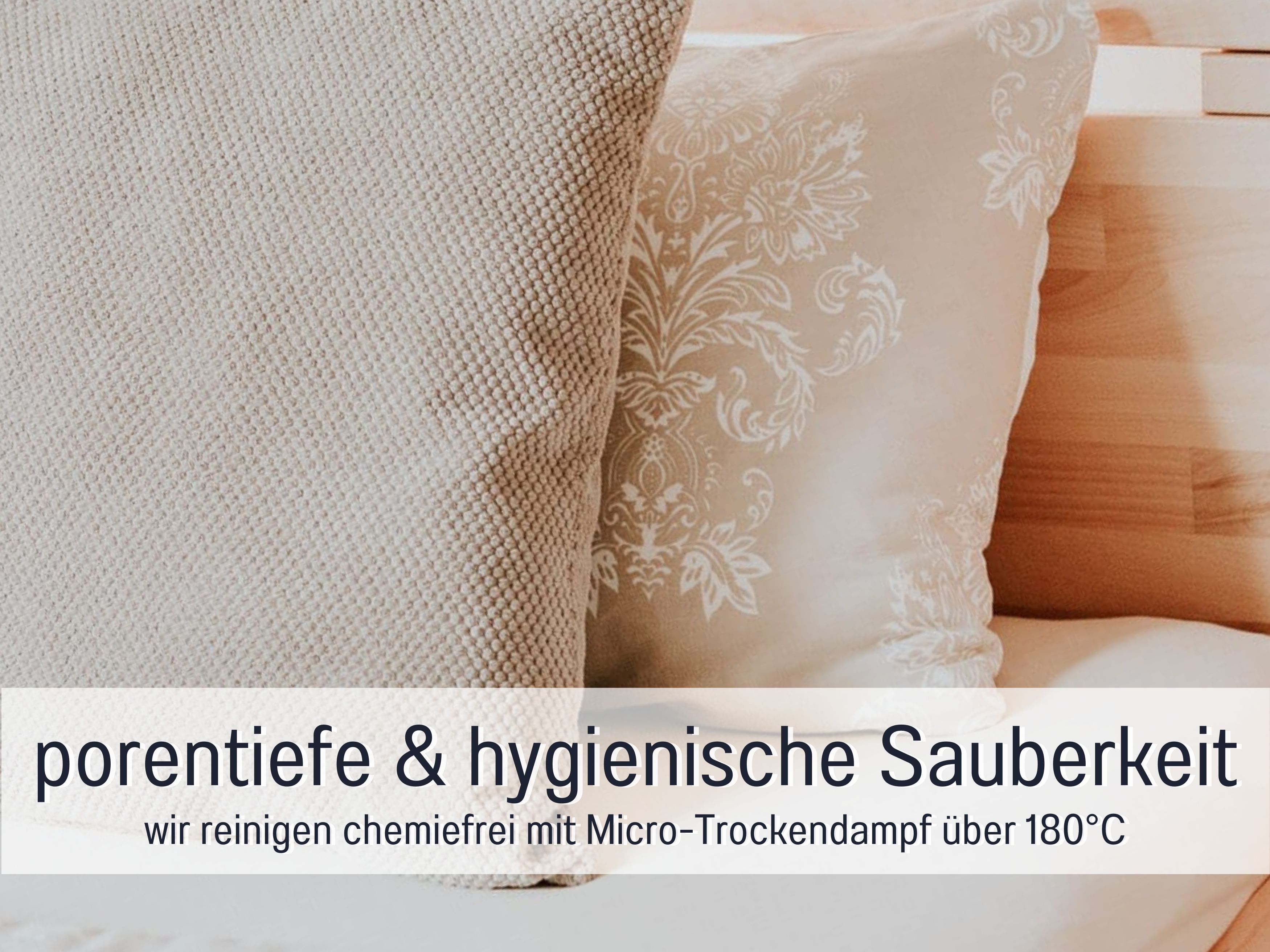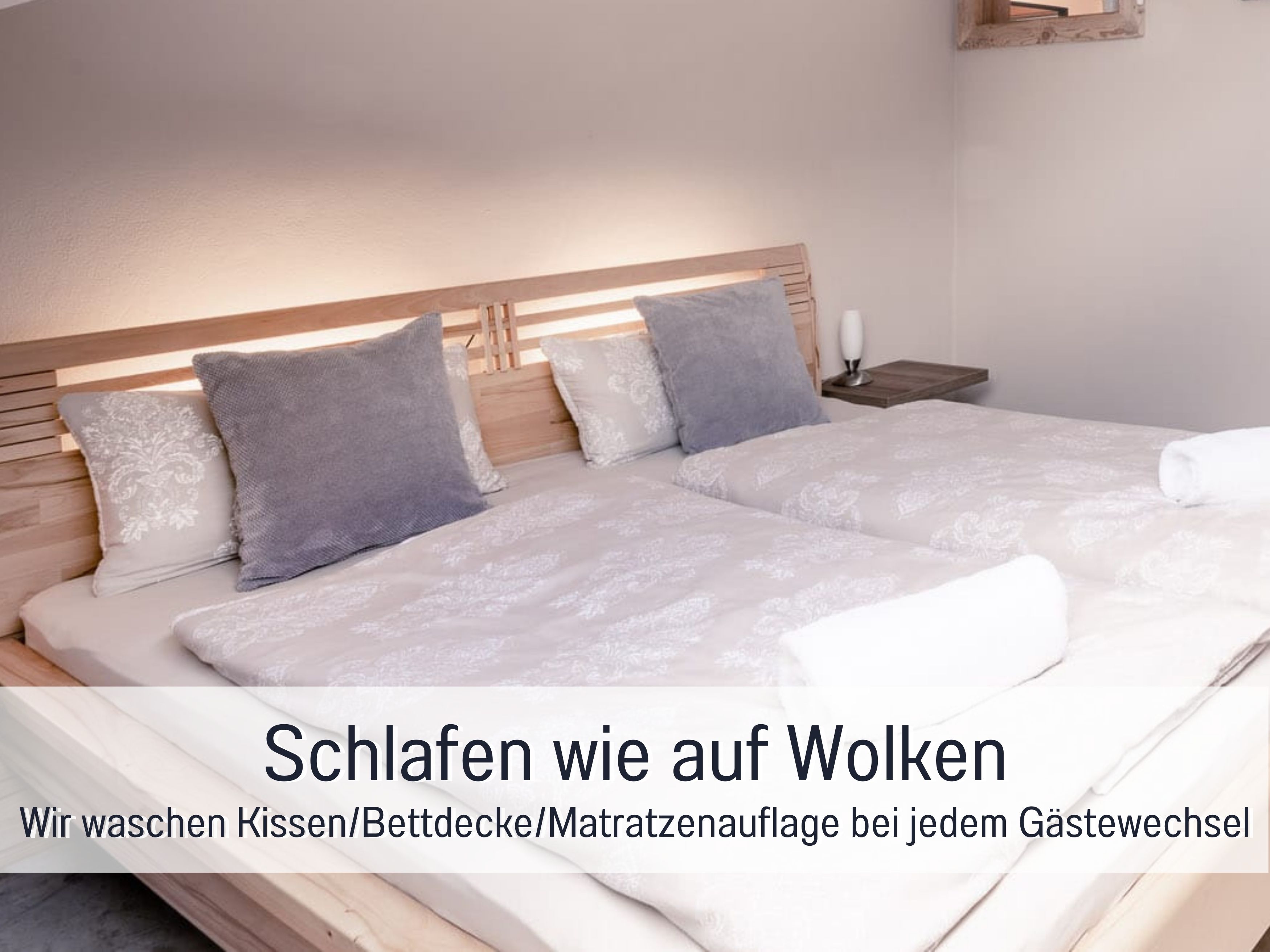 Sehr hoher Reinigungs- und Hygienstandard. Wir reinigen mit Wasser-Staubsauer und Micro-Trockendampf für hygienisch reine und porentiefe Sauberkeit. Bettdecken, Kissen und Matratzenauflage werden nach jedem Gästewechsel (im Haus) gewaschen.