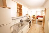 Freundlich eingerichtete Ein-Zimmer-Ferienwohnung (27 m²) im Erdgeschoss für 1-2 Personen. Ausgestattet mit kombiniertem Wohn-/Schlafraum, Küchenzeile, Dusche/WC, Kabel-TV, kostenloses W-LAN, Terrasse. Auf Wunsch Telefon in der Ferienwohnung, sowie Brötchen- und Zeitung-Service.