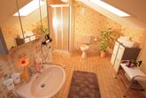 Freundlich eingerichtete Zwei-Zimmer-Ferienwohnung (50 m²) 2. Obergeschoss für 1-3 Personen. Ausgestattet mit getrenntem Wohn-und Schlafraum, Küchenzeile, Badewanne/Dusche/WC, Kabel-TV, kostenloses W-LAN, Balkon. Auf Wunsch Telefon in der Ferienwohnung, sowie Brötchen- und Zeitung-Service.