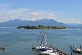 Unser Haus liegt ruhig, direkt am Ufer, mit herrlichem Blick über den See, auf die Fraueninsel und auf die Berge. Viele Gäste sagen, der schönste Platz rund um den Chiemsee. Vor dem Haus unser Yachthafen, mit Segel-, Ruder- und Elektrobooten zum Verleih. Direkter Seezugang, ca. 60 m. zur Anlegestelle der Chiemseeschifffahrt auf die Frauen-und Herreninsel, Liegewiese am See mit Badeleiter und Liegestühlen. Nichtraucherzimmer, Ferienwohnungen, 1-Zimmer-Apartement stehen Ihnen zur Verfügung.
