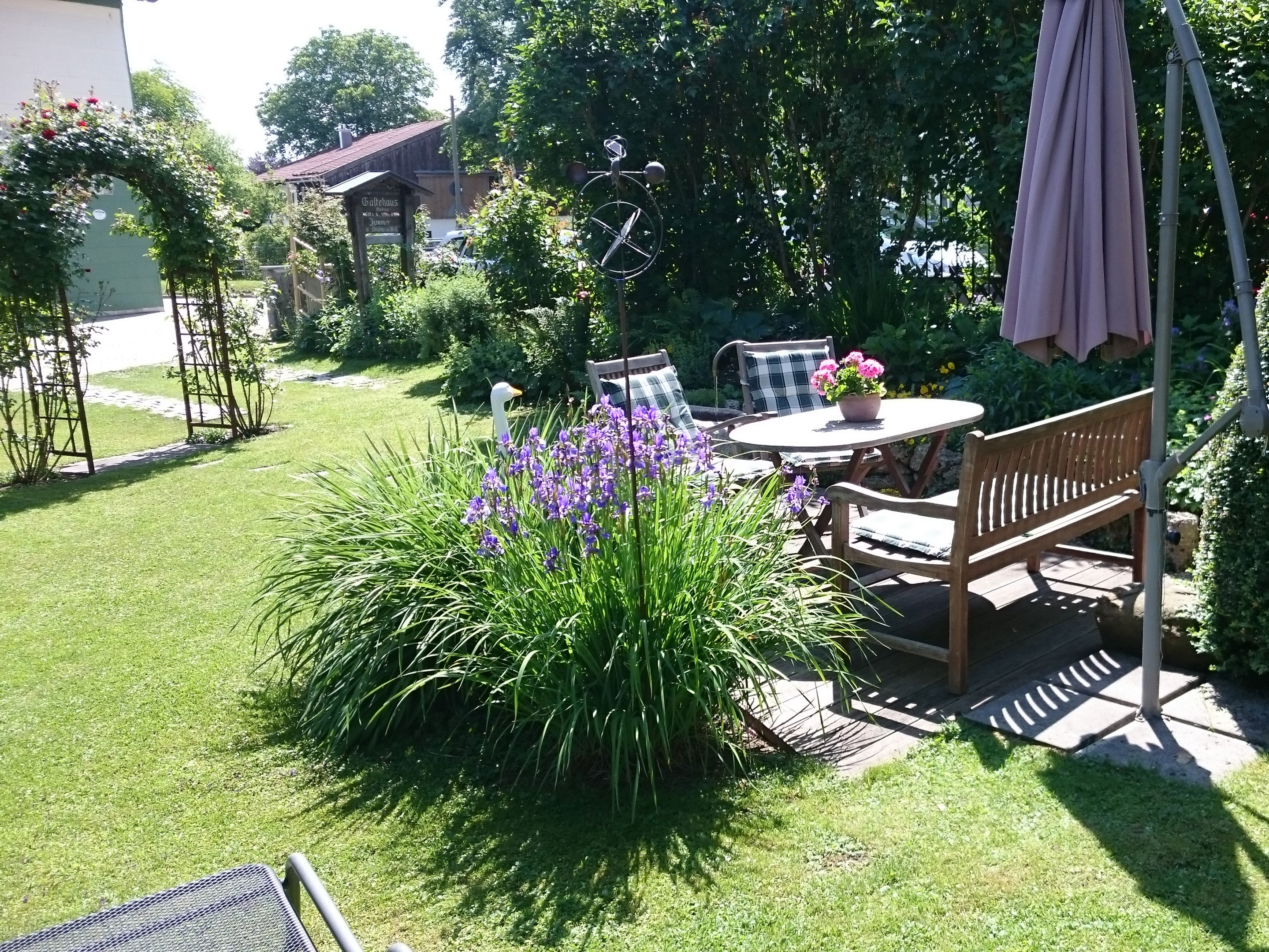 Die Wohnung befindet sich in der 1. Etage im hinteren Nordwest Flügel unseres Hauses. Die Schlafzimmer sind auf der Ostseite. Küche und Wohnzimmer mit Balkon auf der Westseite. So können Sie die Abendsonne bis zum letzten Sonnenstrahl mit Blick in den Garten genießen. Sie können auch in unserer Pension frühstücken. Wir verwöhnen Sie mit einem vielfältigen Frühstücksbuffet in unseren Wintergarten mit Blick in den blühenden Garten. Bei einem netten Gespräch am Frühstückstisch, verraten wir Ihnen manch interessanten Ausflugstipp. Durch unsere persönliche Betreuung, garantieren wir Ihnen einen angenehmen Aufenthalt. Ausstattung: 70qm große Nichtraucherwohnung in der 1. Etage für 2 - 4 Personen mit separaten Eingang,(Sie können auf dem Balkon rauchen ), 2 Schlafzimmer, Doppelbetten/Komforthöhe von 50cm, Jalousie zur kompletten Verdunkelung, Insektenschutz, komplett eingerichtete Einbauküche mit Essecke, Mikrowelle, Espressomaschine, Kaffeemaschine, Wasserkocher, Eierkocher, Toaster, Spülmaschine, Bad mit ebenerdiger Dusche, Handtuchwärmer, Spiegelschrank, Föhn, Erste Hilfe Set und Toilettenartikel, Wohnstube mit Kachelofen, kompakt Stereoanlage, Flachbild TV, kostenloser Internetzugang, Infomaterial, Spiele Sammlung, 8qm Balkon, Balkonmöbel: 2 Stühle, 1 Bank, 1 Tisch, 1 Badeliege und einen Sonnenschirm.