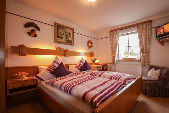 Gemütlich eingerichtetes Zimmer mit gepflegter Einrichtung. Das Zimmer befindet sich auf der Ostseite des Hauses, somit werden Sie mit den ersten Sonnenstrahlen am Morgen begrüßt. Freuen Sie sich an jedem Urlaubstag auf ein entspanntes Frühstück mit angenehmer Atmosphäre in unserem Wintergarten. Durch unsere persönliche Betreuung, garantieren wir Ihnen einen angenehmen Aufenthalt. Ausstattung: 17qm großes Nichtraucherzimmer, Doppelbett/Komforthöhe von 50cm, Jalousie zur kompletten Verdunkelung, Insektenschutz, ebenerdige Dusche/WC, Toilettenartikel und Föhn, Flachbild TV, Informationsmaterial, kostenlose Internetnutzung.
