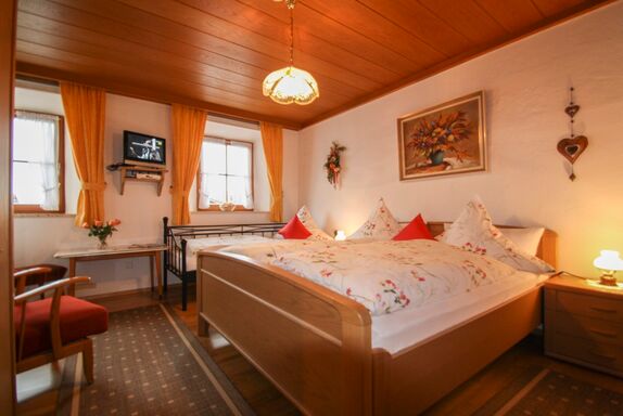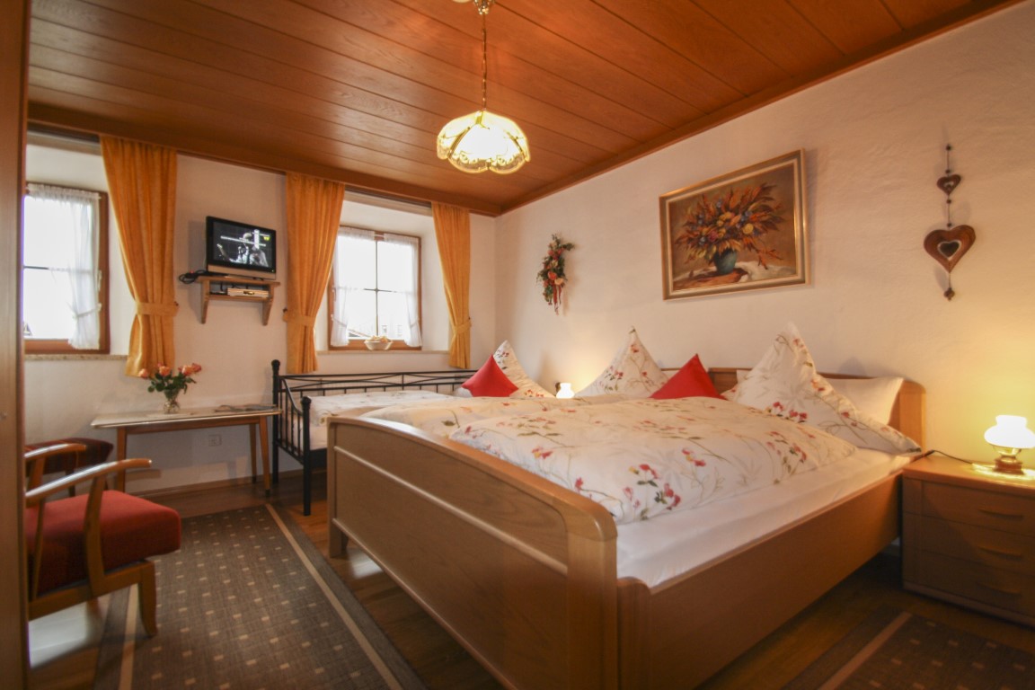 Gemütlich eingerichtetes Dreibettzimmer mit gepflegter Einrichtung. Das Zimmer befindet sich auf der Ostseite des Hauses, somit werden Sie mit den ersten Sonnenstrahlen am Morgen begrüßt. Freuen Sie Sich auf einen erlebnisreichen Urlaubstag mit vielen neuen Endrücken in unserer Region. Durch unsere persönliche Betreuung, garantieren wir Ihnen einen angenehmen Aufenthalt. Ausstattung: 23qm großes Nichtraucherzimmer, Doppelbett mit Zusatzbett von 2,00m X 0,90m, Komforthöhe von 50cm, Jalousie zur kompletten Verdunkelung, Insektenschutz, Dusche/WC, Toilettenartikel und Föhn, Flachbild TV, Infomaterial, kostenloser Internetzugang.