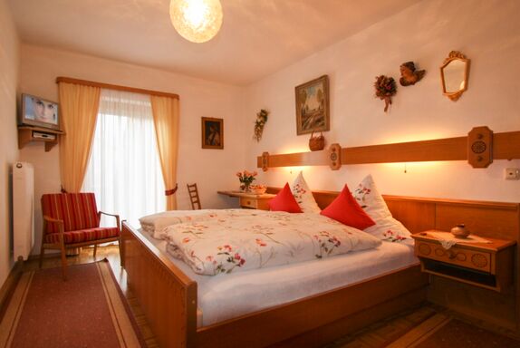 Gemütlich eingerichtetes Zimmer mit gepflegter Einrichtung. Der Balkon befindet sich auf der Westseite mit einer überdachten Sitzecke, somit können Sie die Abendsonne bis zu den letzten Sonnenstrahlen mit Blick auf den Garten genießen. Freuen Sie sich beim entspannten Frühstück auf neue interessante Ausflugstipps . Durch unsere persönliche Betreuung, garantieren wir Ihnen einen angenehmen Aufenthalt. Ausstattung: 20qm großes Nichtraucherzimmer (Sie können auf dem Balkon rauchen ), Doppelbett /Komforthöhe von 50cm, Jalousie zur kompletten Verdunklung, Insektenschutz, ebenerdiger Dusche mit Thermostat/WC, Toilettenartikel und Föhn, Fenster im Bad, Flachbild TV, Infomaterial, kostenlose Internetnutzung, 10qm Balkon mit überdachter Sitzecke, Balkonmöbel: 2 Stühle, 1 Tisch, 1 Badeliege und einen Sonnenschirm.