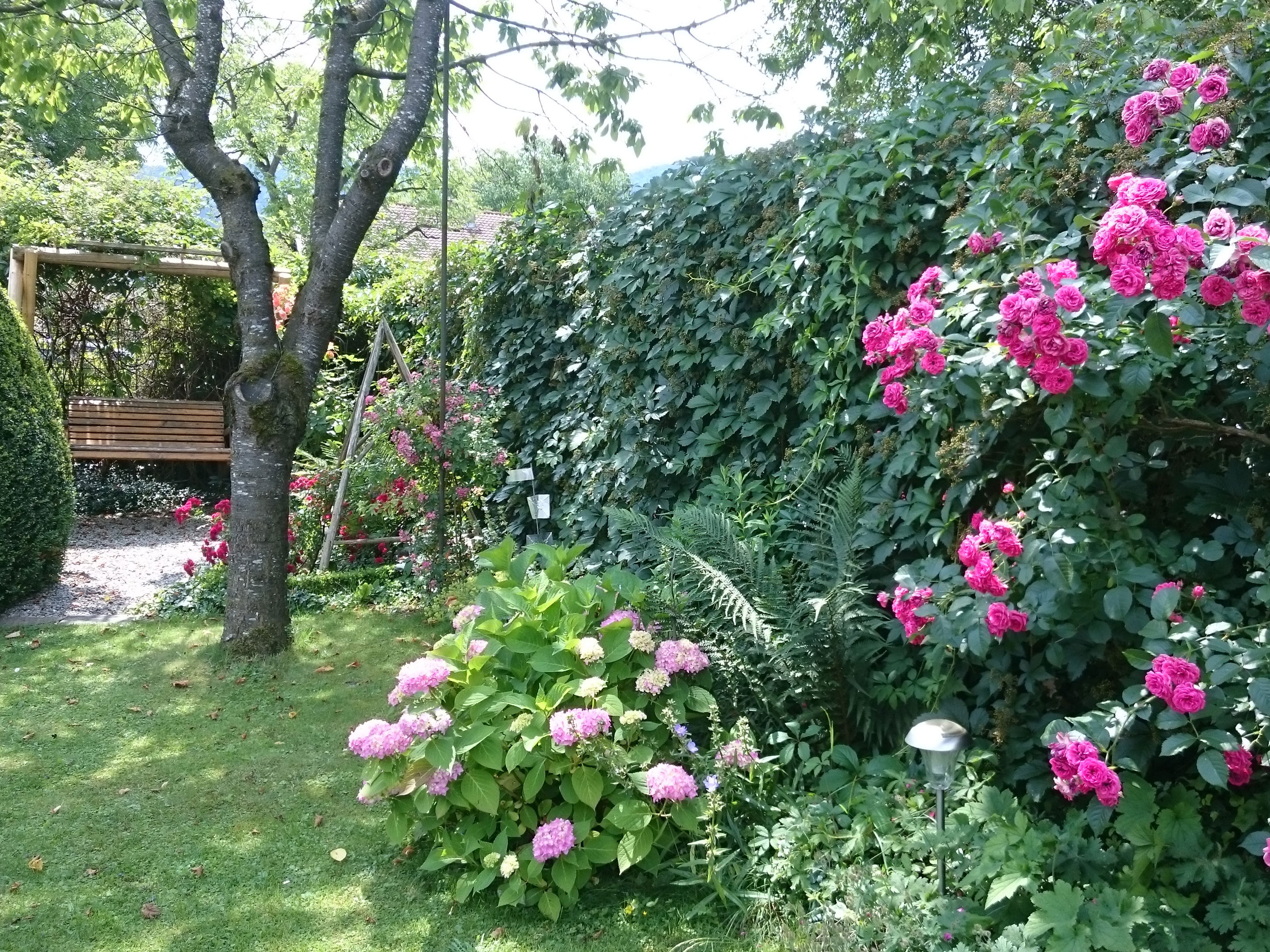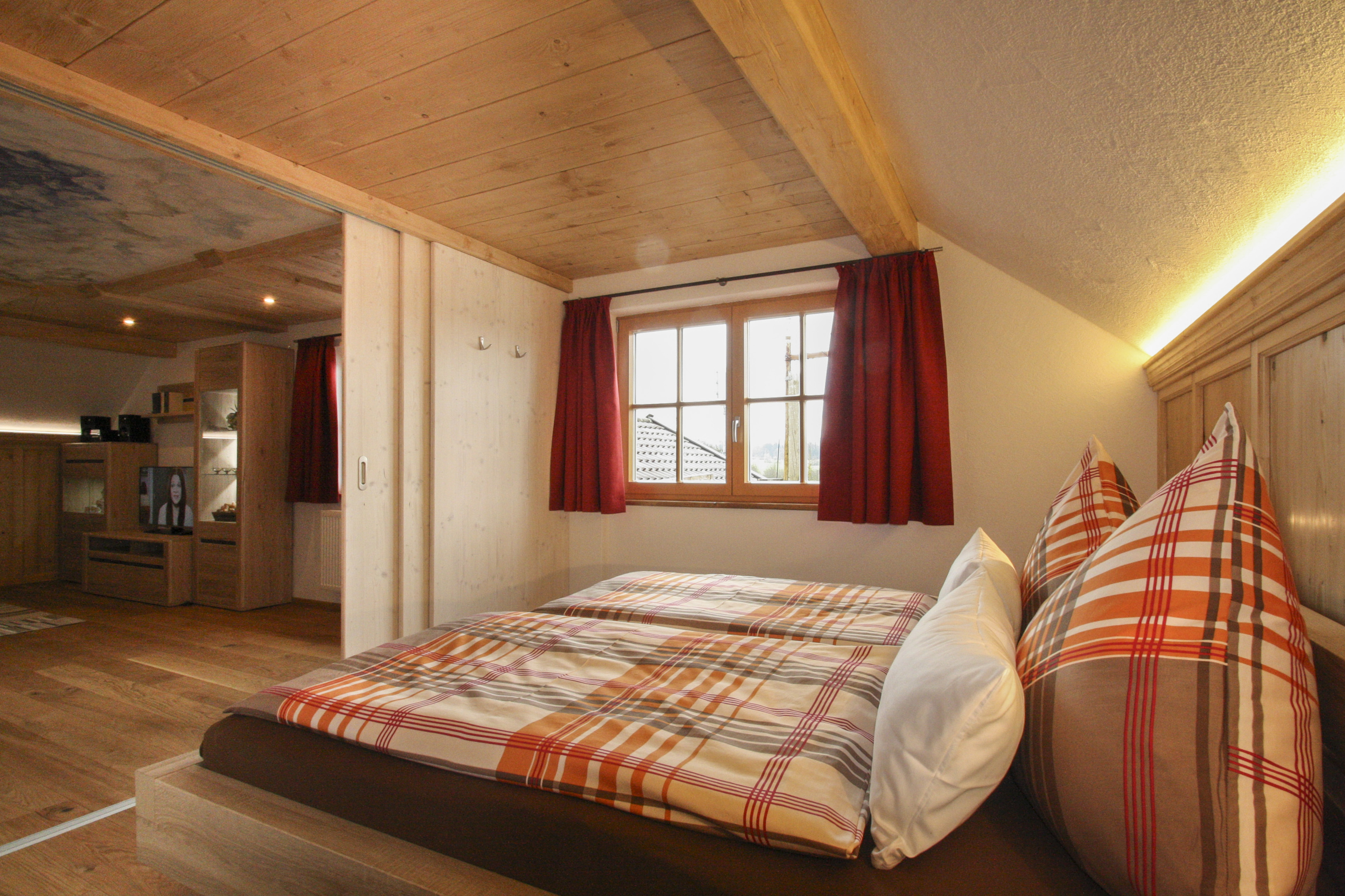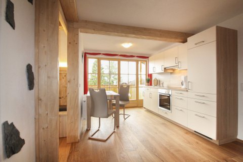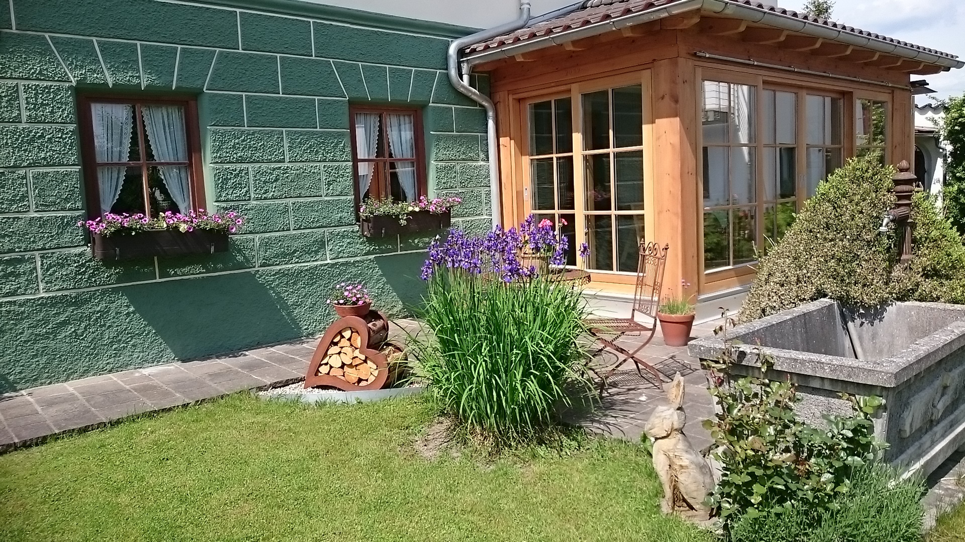 Die Wohnung befindet sich in der 2. Etage auf der Ostseite des Hauses. Mit einem herrlichen Bergblick bis ins Chiemgau. Auf Wunsch können Sie auch in unserer Pension frühstücken. Wir verwöhnen Sie mit einem vielfältigen Frühstücksbuffet in unserem Wintergarten mit Blick in den blühenden Garten. Bei einen netten Gespräch am Frühstückstisch verraten wir Ihnen manch interessanten Ausflugstipp. Durch unsere persönliche Betreuung, garantieren wir Ihnen einen angenehmen Aufenthalt. Ausstattung: 64qm große Nichtraucherwohnung in der 2. Etage für 2 Personen, 3 Pers. auf Anfrage (Sie können auf dem Balkon rauchen), mit stabiler Schlafraumabtrennung (dickwandige Holzschiebewand) mit separater Tür, Doppelbett/Komforthöhe von 50cm, Jalousie zur kompletten Verdunkelung, Insektenschutz, komplett eingerichtete Einbauküche mit Essecke, Kaffeemaschine, Wasserkocher, Toaster, Flachbild TV, kompakt Stereoanlage, Bad mit ebenerdiger Dusche, Dachfenster mit Regensensor, Handtuchwärmer, Toilettenartikel, Föhn und Erste Hilfe Set, kostenlose Internetnutzung, Infomaterial, Spiele Sammlung, 4 qm großer Balkon zur Ostseite (Morgensonne) mit 2 Stühlen und 1 Tisch