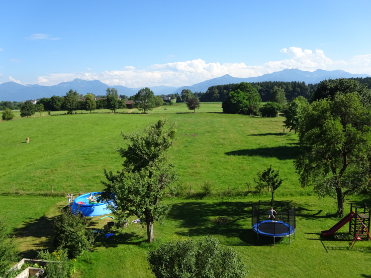 Das Haus liegt in sehr ruhiger Lage, etwas außerhalb vom Ortskern, zwischen Chiemsee und Langbürgener See.