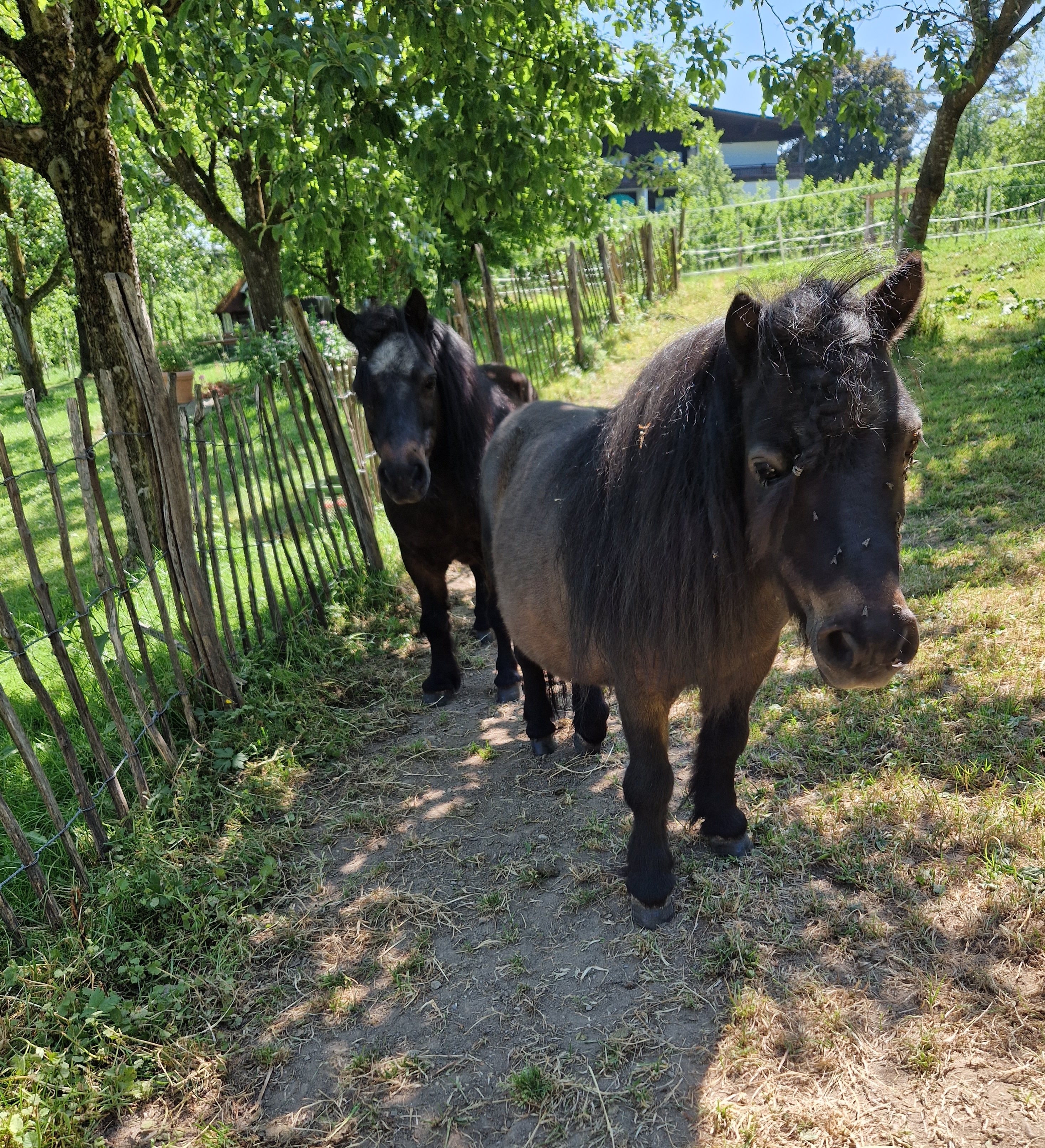 Für unsere kleinen Gäste sind unsere Mini Shettys, Hasen und Hühner sowie Hofkatzen zu bestaunen und natürlich zu streicheln.