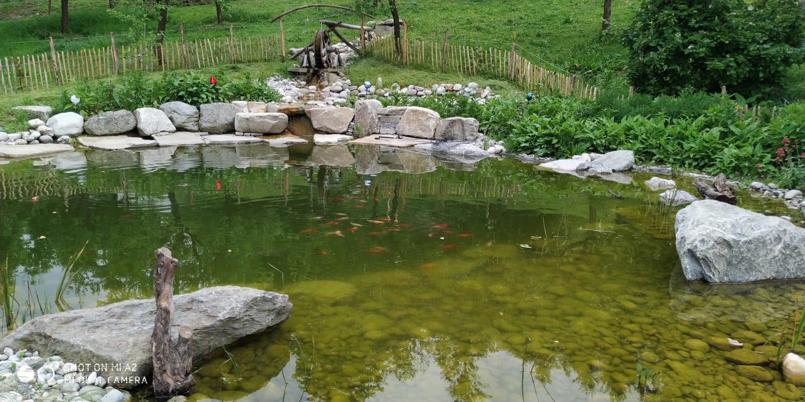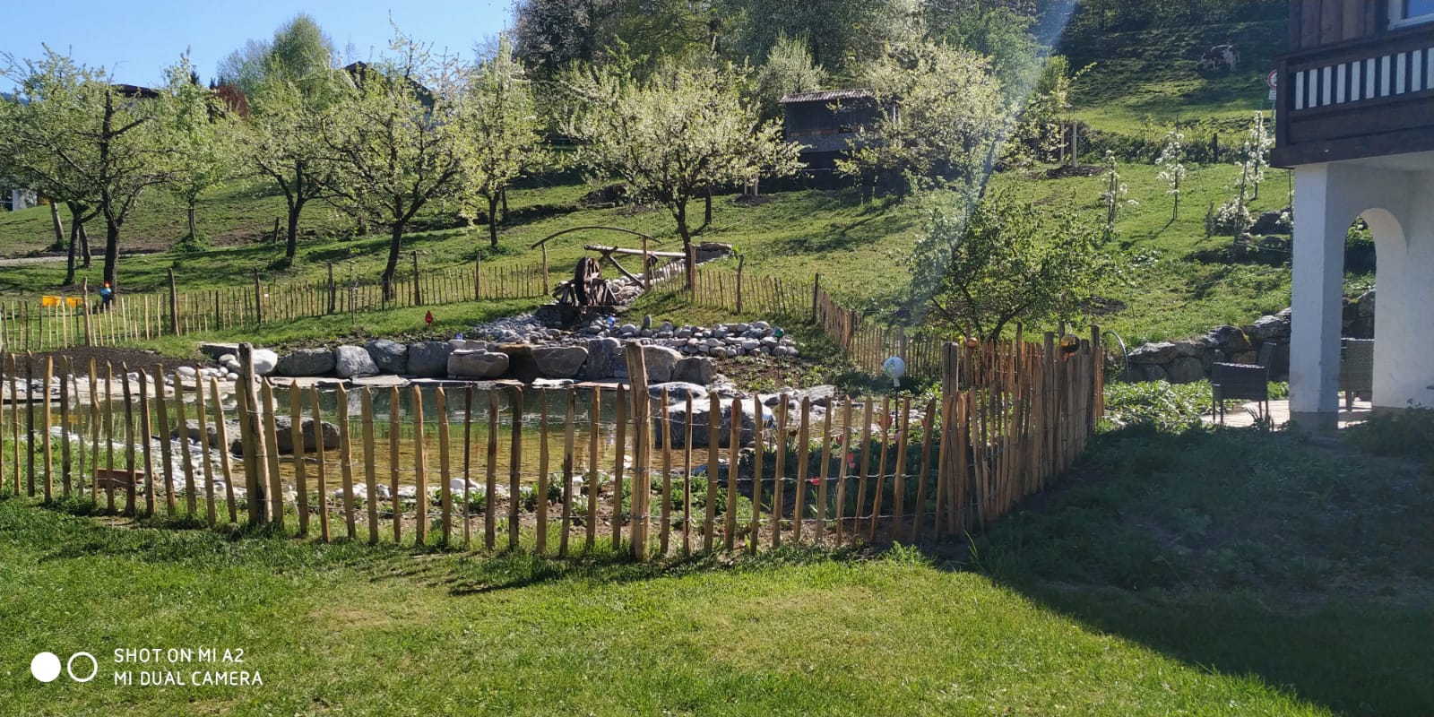 In unserem großzügigen Garten mit Fischteich und Liegewiese haben Sie die Möglichkeit abzuschalten oder einen Grillabend in unserer Grillhütte zu verbringen.