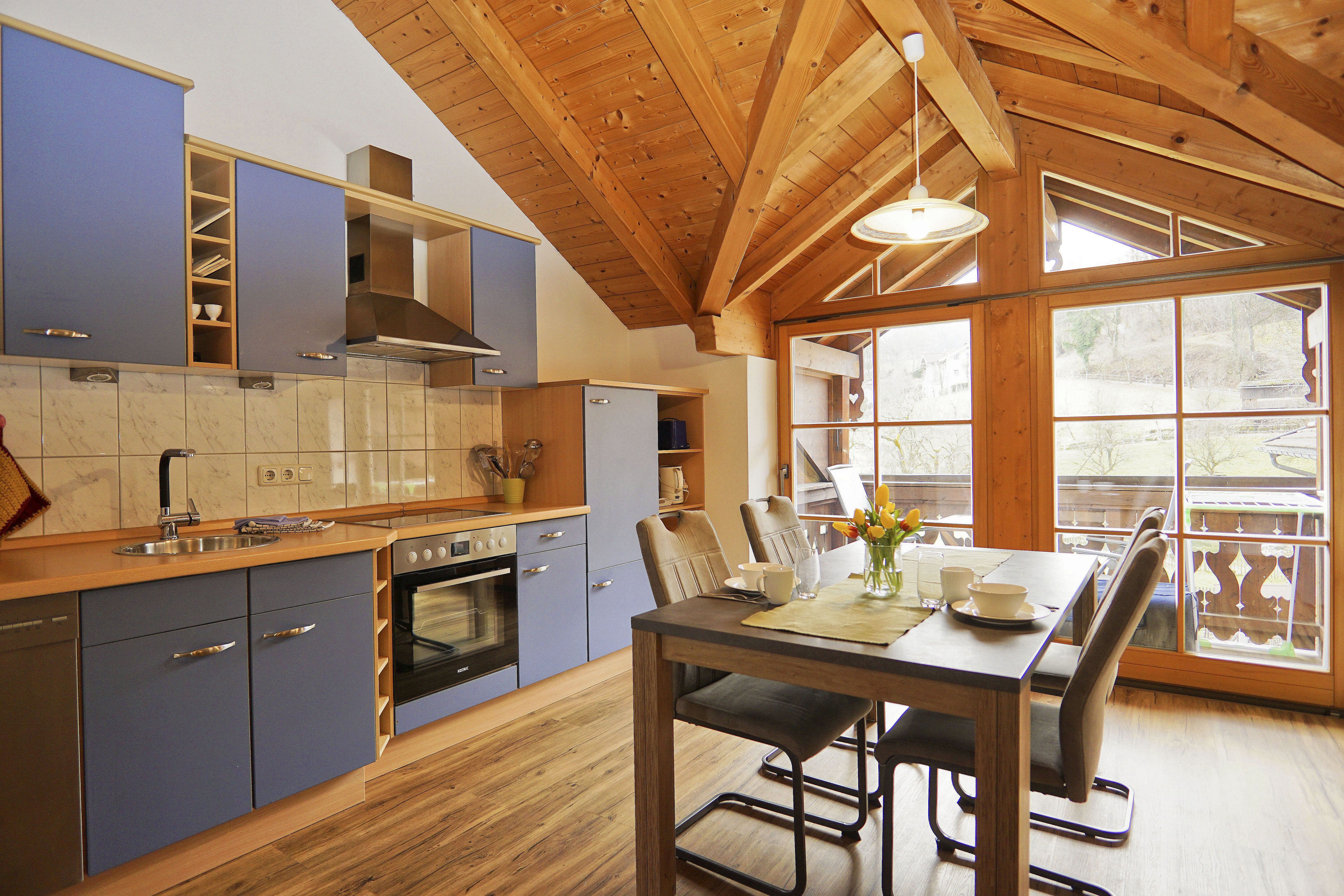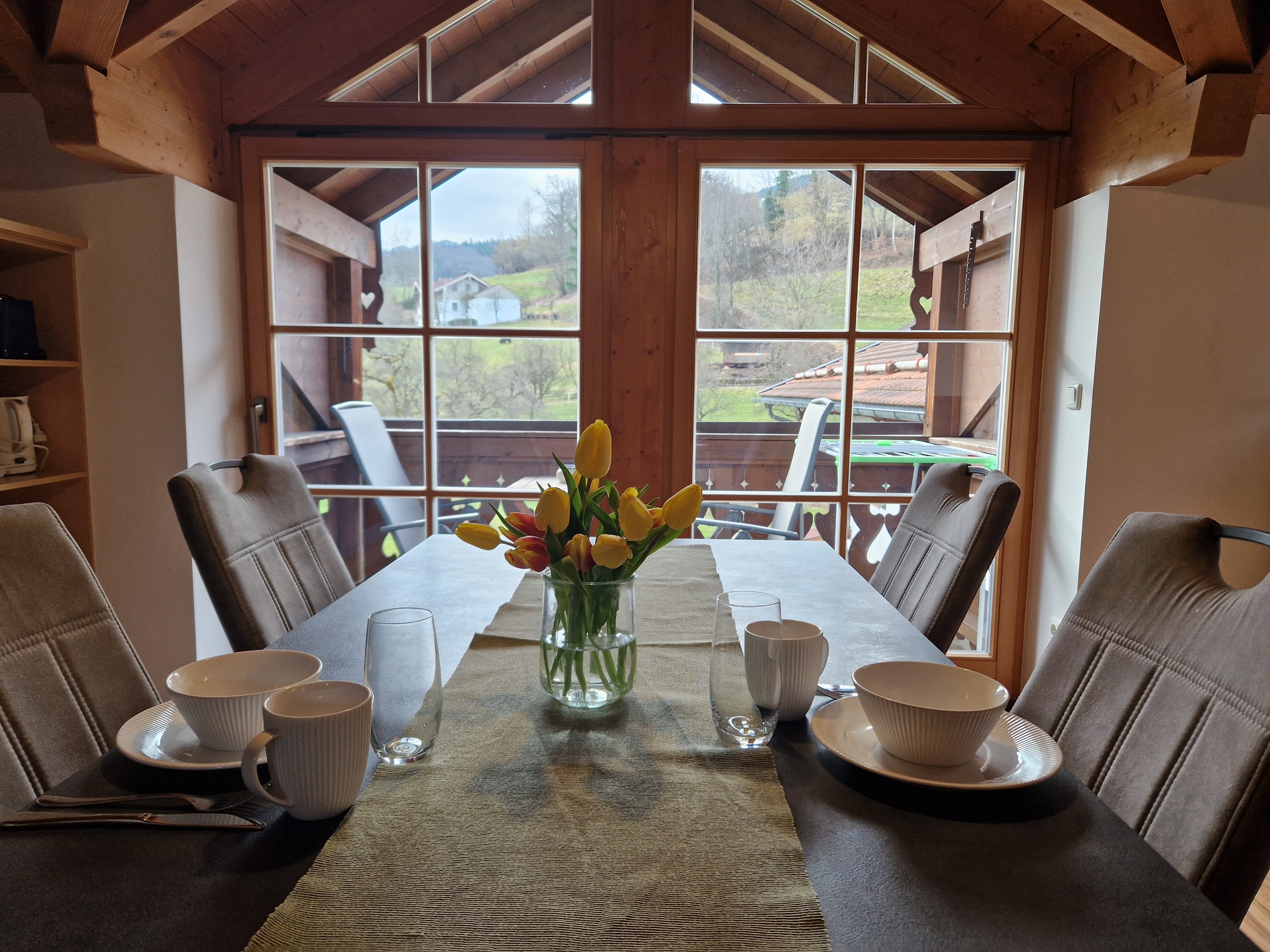 Ebenso hat der Wohnraum einen direkten Zugang zum Südbalkon mit herrlichem Ausblick auf den Garten.