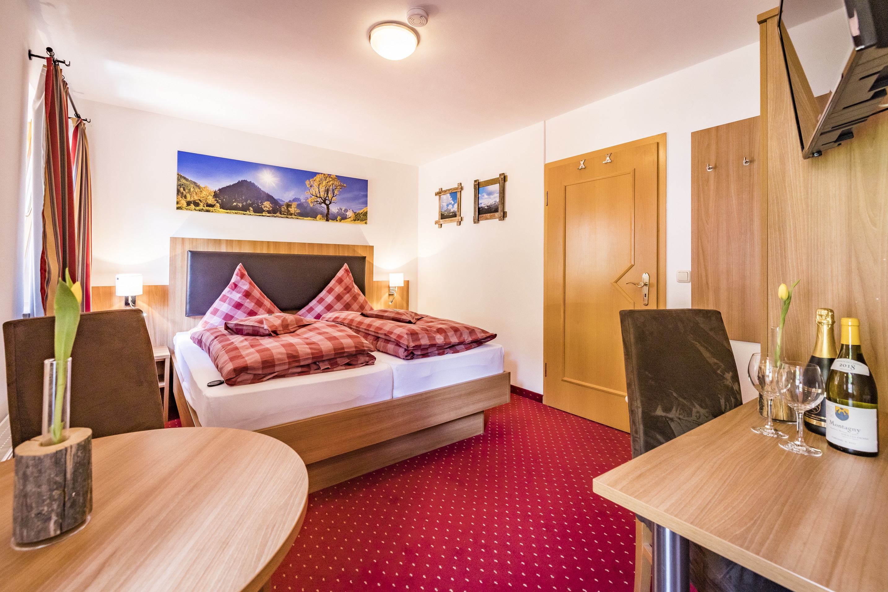 Unser neu eingerichtetes Wohlfühlzimmer ist gemütlich und komfortabel und lädt zu unbeschwerten Urlaubstagen ein. Das Zimmer mit 13 m² Grundfläche ist mit einem Doppelbett, Sitzplätze für 2 Personen, Schreibtisch, 24 Zoll Flachbildschirm, Kleiderschrank, Garderobe, Wandspiegel, Rundtisch ausgestattet. Das helle Badezimmer mit 4 m² Grundfläche ist mit einer großen Eckdusche, WC/Waschbecken, Kosmetikspiegel ausgestattet. Bevor Sie den Urlaubstag starten, begeben Sie sich an unser köstliches Frühstücksbuffet. Durch die zentrale Lage ist unser Haus auch der ideale Ausgangspunkt für schöne Wanderungen und Mountainbike Touren. Eine Sonnenterrasse, ein gemütlicher Aufenthaltsraum, sowie die kleinen Dinge, die den Urlaub perfekt machen, erwarten Sie bei uns.