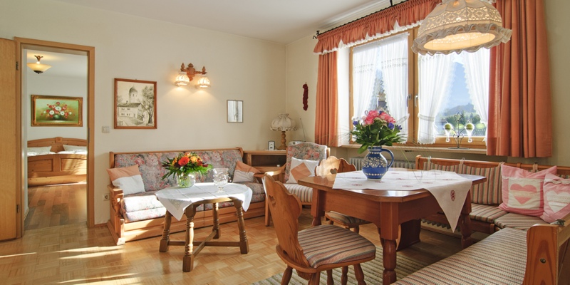 Die gemütlich eingerichteten Ferienwohnungen verfügen über einen getrennten Wohnbereich sowie über 1 Schlafzimmer, 1 Duschbad, TV und DVD, Stereoradio, Geschirrspülmaschine, Backofen sowie einen Haarfön pro Badezimmer. Bettwäsche, Handtücher und Geschirrtücher werden gestellt. Die Endreinigung ist im Preis enthalten. Alle Ferienwohnungen verströmen klassische Behaglichkeit. Vom Balkon genießen Sie die Aussicht auf den Unternberg, der im Winter zu Skitouren einlädt. Autoparkplätze finden Sie entlang der Strasse, direkt vor dem Haus.
