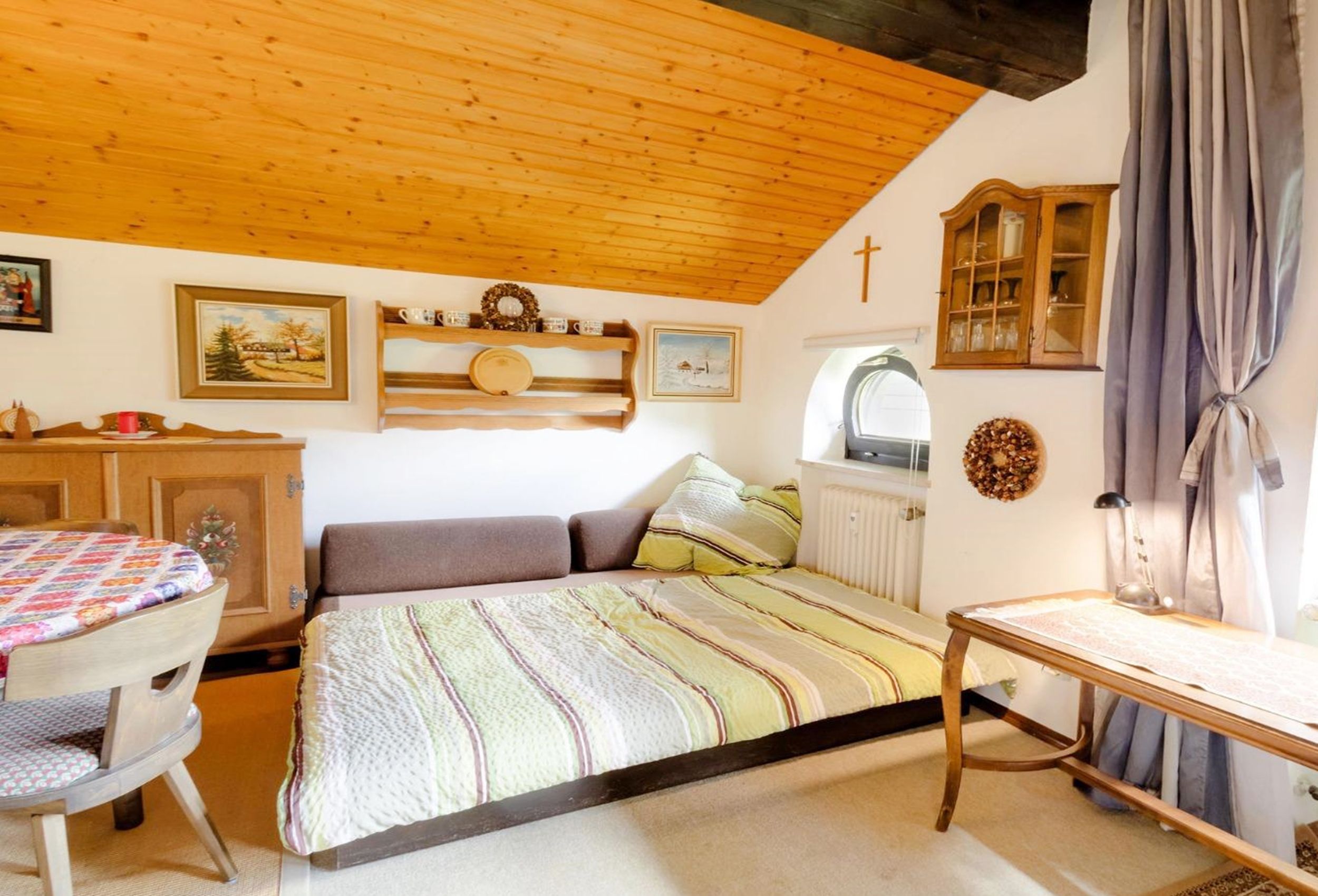 Urgemütliche sehr ruhige 2-Zimmer-Ferienwohnung mit Südbalkon im 1. Stock eines originalen Bauernhauses, Ulmenweg 15, Feichtenhof (FeWo Nr. 6) für 2 - 5 Personen mit schönem Bergblick und Blick ins Grüne im Ferienpark Vorauf. Heimelige Komplettausstattung mit Bauernmöbeln, Eichenparkett, Bad/WC, Kochnische mit allen Elektrogeräten, komplettes Geschirr und Töpfe, Kühlschrank, Herd etc.! Absolut ruhige Lage. Freizeitmöglichkeiten: Minigolf, Tennis, Bolzplatz, Wandern und Wintersport. Tiere sind nicht erlaubt. Bitte nur auf dem Balkon rauchen! Kostenloses W-Lan