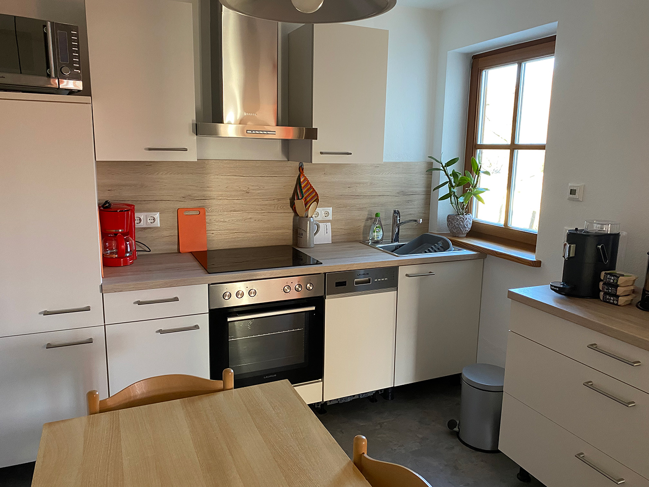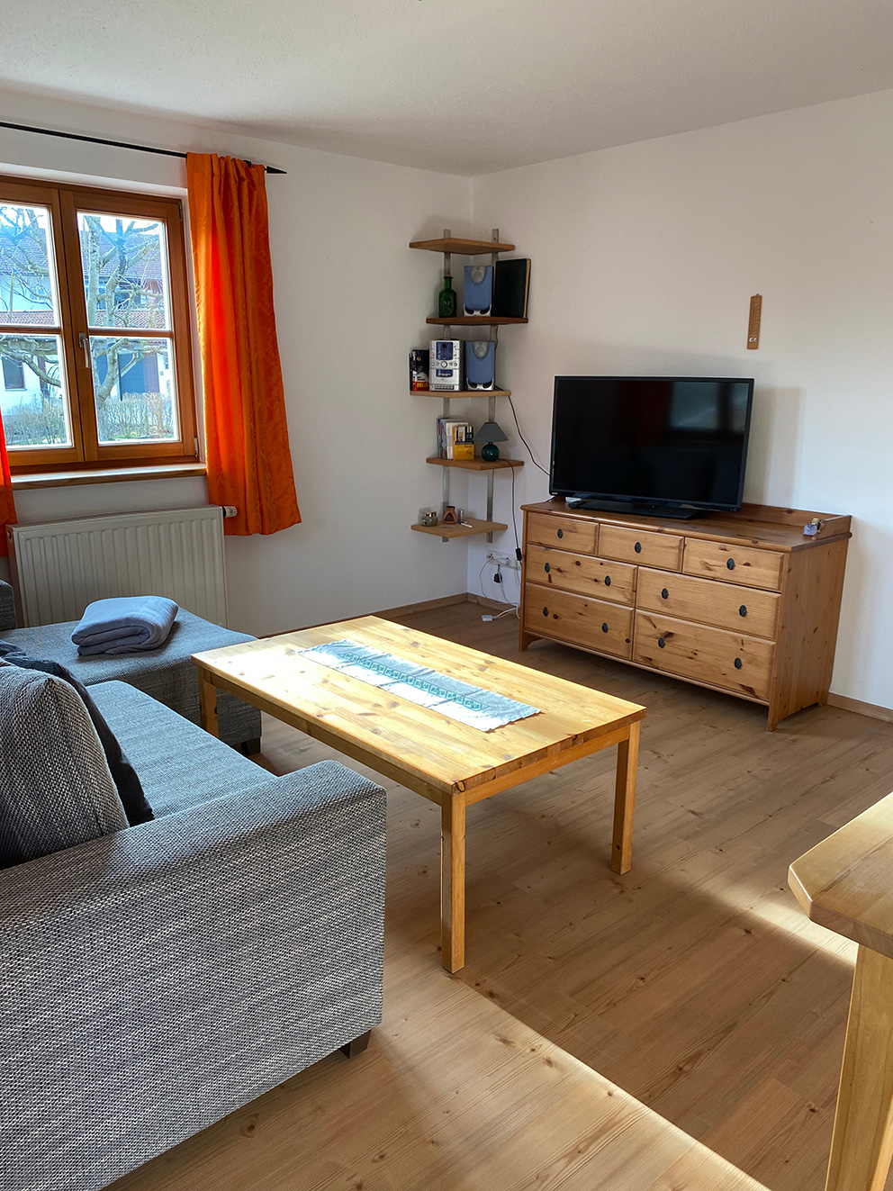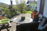 Die helle und freundliche Wohnung hat 40 qm, aufgeteilt in 1 Schlafzimmer, 1 Wohnküche mit Eckbank und ein Bad mit Dusche und WC. Sie befindet sich im Erdgeschoss und verfügt über eine Ost- und Südterrasse mit Gartenmöbeln. Das Schlafzimmer ist mit einem Doppelbett (180 x 200) und einem großen Schrank ausgestattet. Im Wohnzimmer befindet sich ein Sofa. Die Küche ist ausgestattet mit Kaffeemaschine, Wasserkocher, Toaster, Kühlschrank mit Gefrierfach, Mikrowelle, Elektroherd mit Ceranfeld und Spülmaschine. Guter Ausgangspunkt für Wanderungen und Radtouren. Guter Ausgangspunkt für Winterwanderungen. Abstellraum für Ski und Schlitten und Fahrräder vorhanden.
