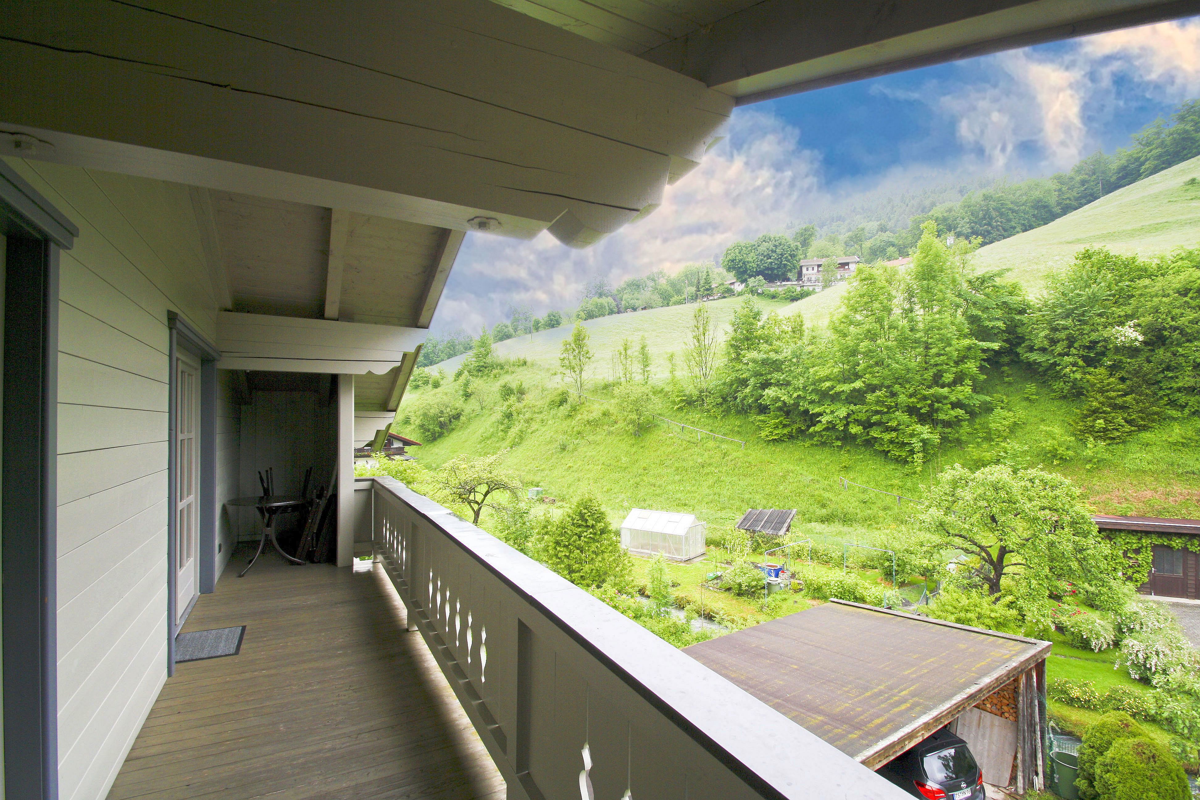 Die Ferienwohnung 5 verfügt über einen großen Balkon mit Ausblick auf die Berge, eine großzügige Küche, die voll ausgestattet ist und ein separates Schlaf- und Wohnzimmer.