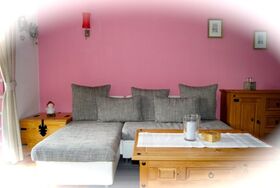 Sehr gemütlich eingerichtete 2-Zimmerwohnung für 2-4 Personen mit Balkon, Küche mit Backofen, Kühlschrank, Gefrierfach, Geschirrspüler und Kabel-TV, Essecke, Wohn/Schlafraum getrennt, Bad/WC, Hund erlaubt