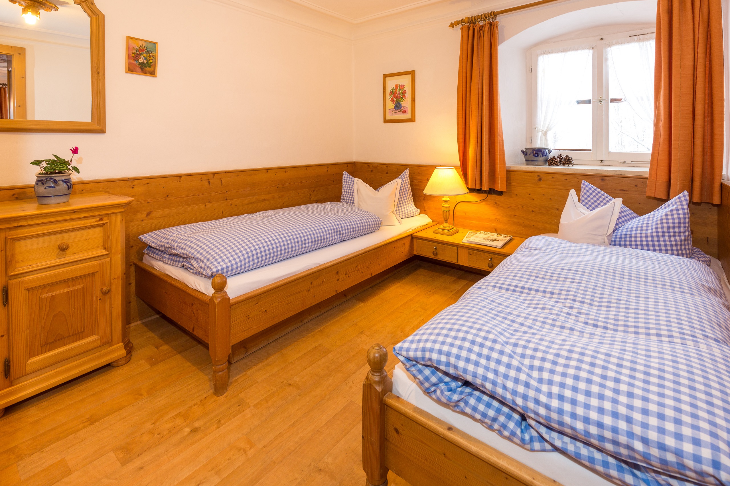 Gemütliche Ferienwohnung mit Komfort, ruhige und zentrale Lage, separater Eingang. Im Schlafraum zwei getrennte Betten und im Wohnraum eine Doppelausziehcouch mit Lattenrost und Matraze. Zur Wohnung gehört ein Carport. Garage auf Anfrage. Von Oktober bis April können Sie unsere Sauna im Nebenhaus (Landhaus Pichler) für 2 Stunden einmal in der Woche alleine nutzen. Die Chiemgau-Karte gehört zu unserem Angebot.