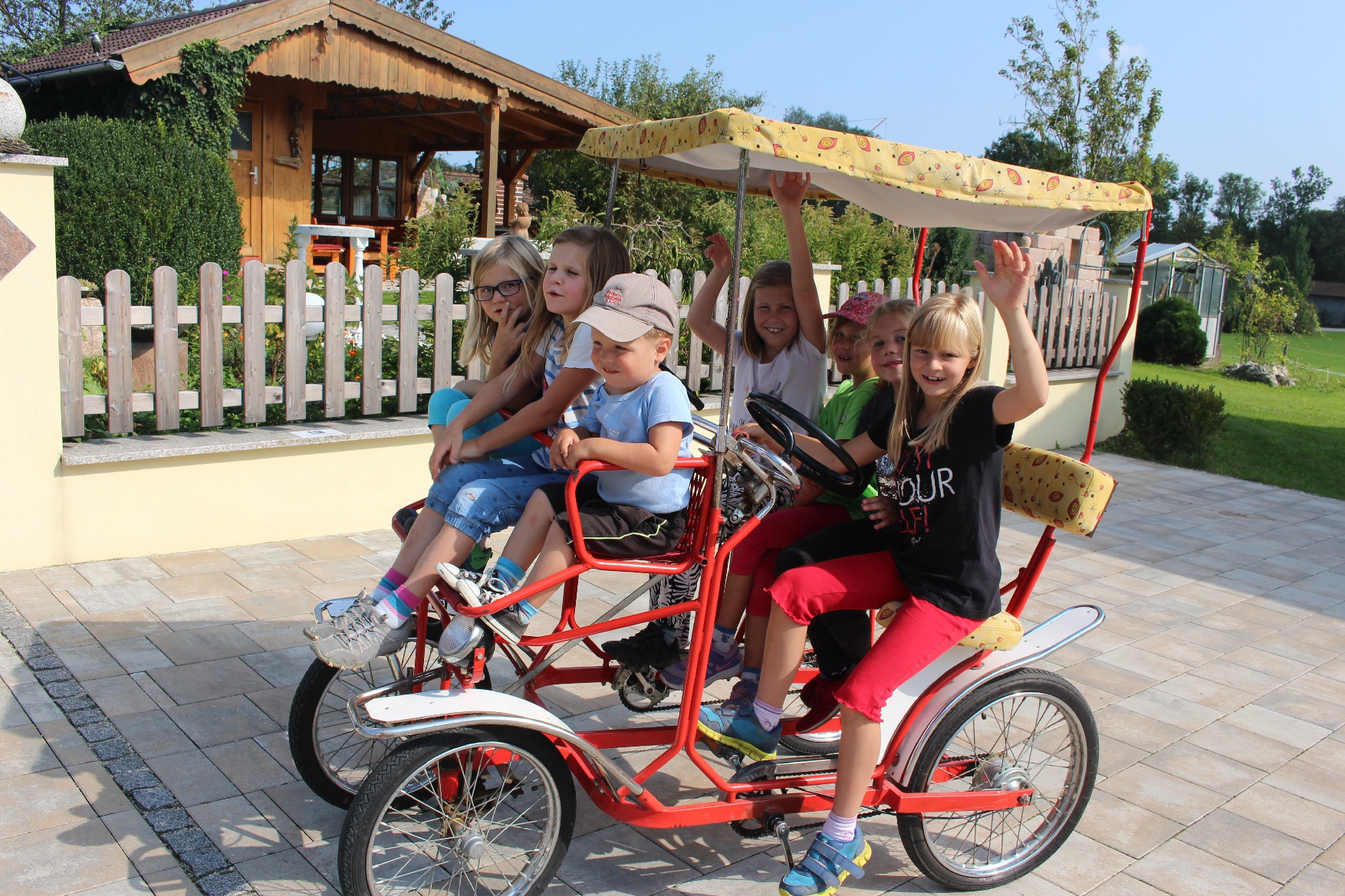 Im Aussenbereich bieten wir unseren Gästen eine hauseigene Minigolfanlage, einen Spielplatz für groß und klein, sowie eine großzügige Gartenanlage mit Liegewiese, Loungecke, Wintergarten, Grillplatz, Pizzabackecke und vieles mehr. Unser kleiner Streichelzoo mit Ponys sowie unseren großen Kutschenpferde, freuen sich auf unsere Gäste.