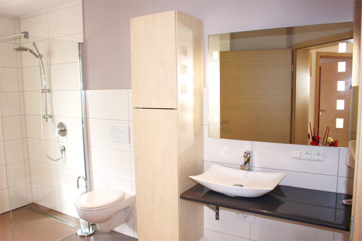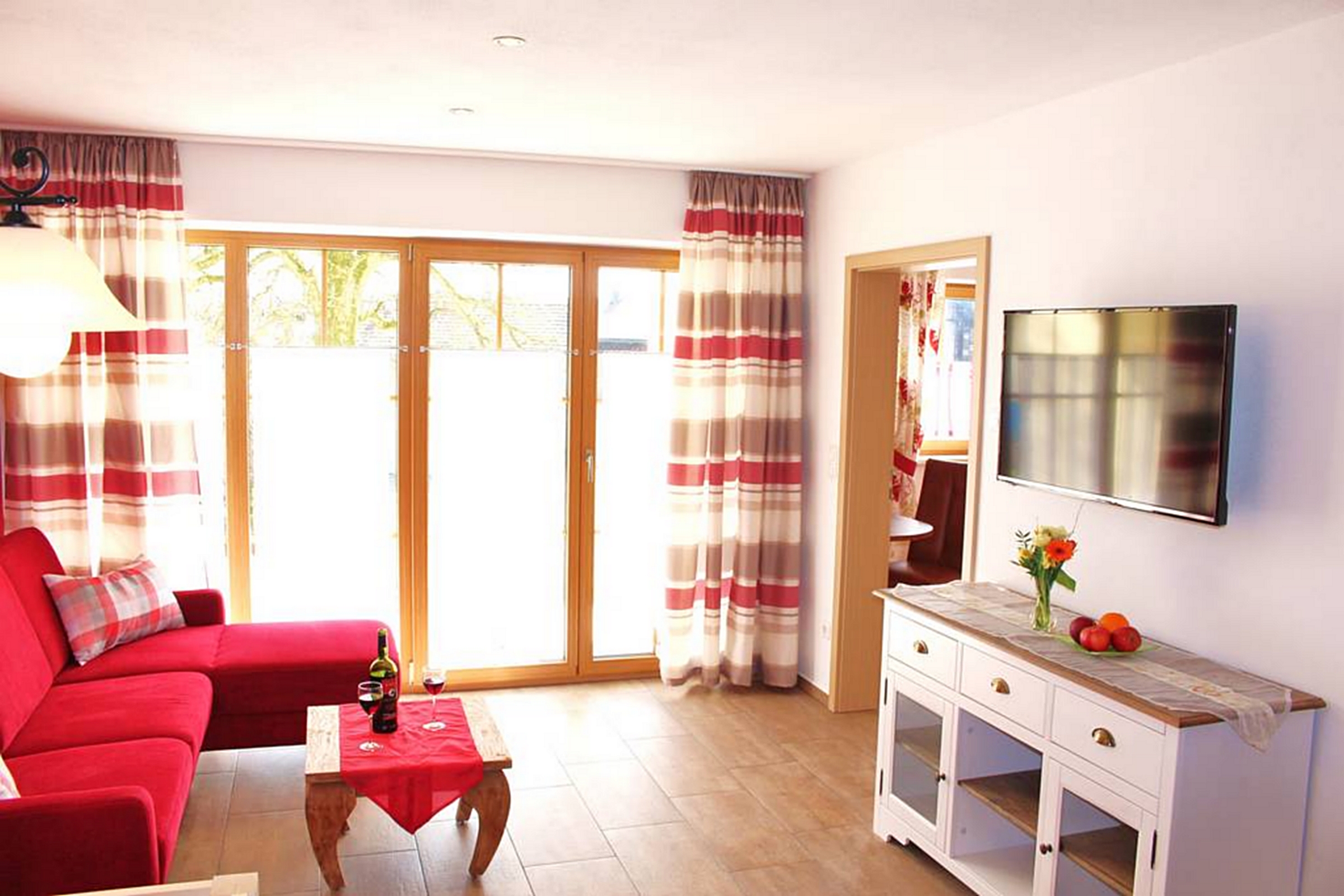 Unsere Ferienwohnung Mohnblume befindet sich im Erdgeschoss unseres Gästehauses und bietet mit ihren ca. 65 m² genügend Platz für 2 bis 4 Personen. Die barrierefreie liebevoll eingerichtete Ferienwohnung ist modern und hochwertig ausgestattet und lässt keine Wünsche offen. Sie verfügt über zwei getrennte Schlafzimmer sowie einen großen Balkon der zum Sonnen einlädt. Die Küche ist komplett ausgestattet mit E-Herd, Backofen, Kühlschrank mit Gefrierfach, Mikrowelle, Geschirrspüler, Waschmaschine, Kaffeemaschine, Wasserkocher, Eierkocher, Handrührgerät, Stabmixer und Toaster.