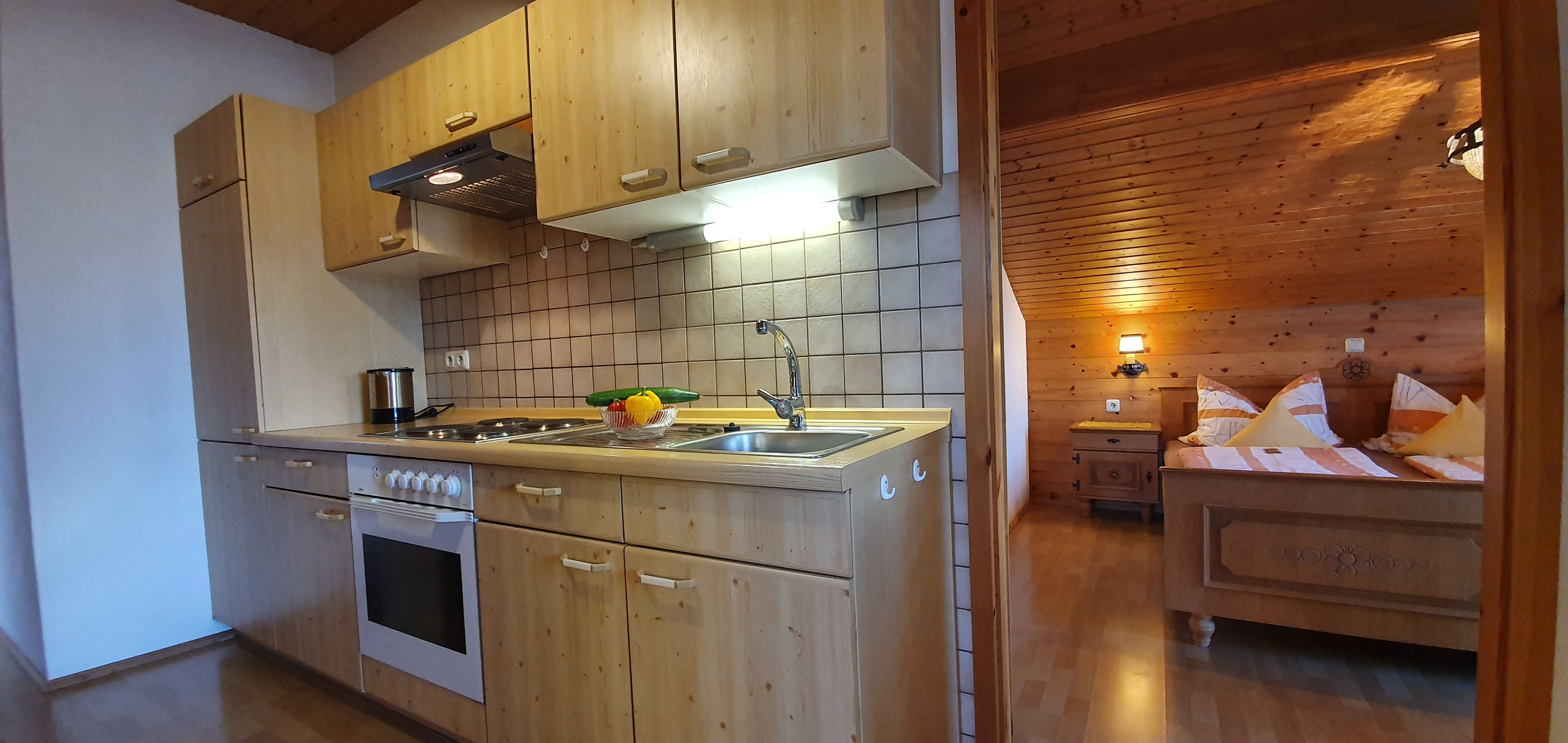 Die Ferienwohnung Teisenberg hat 33m². Geeignet für 1-4 Personen hat sie eine Küche mit komplett ausgestatteter Küchenzeile, sowie Essbereich und Fernseher, 2 Schlafzimmer mit je einem Doppelbett, Bad und WC. Direkter Ausgang auf den Balkon mit Tisch, Stühlen und atemberaubendem Bergblick.