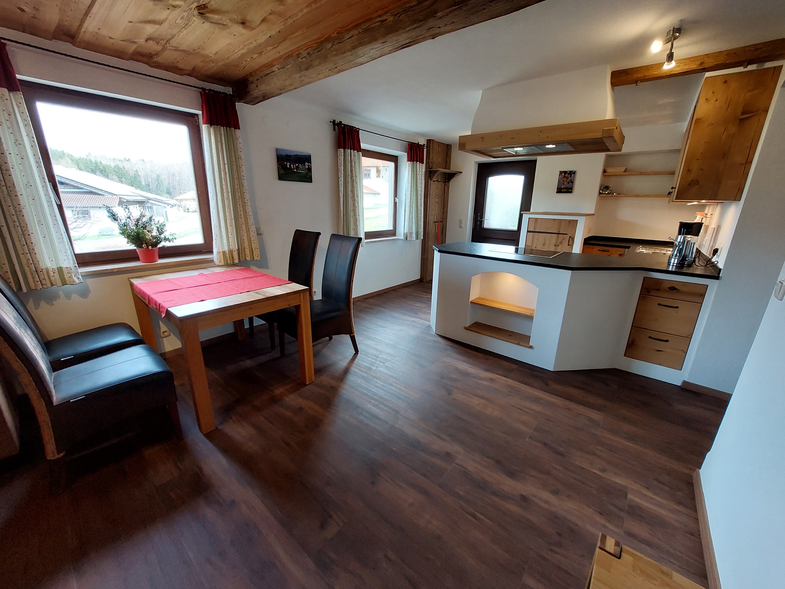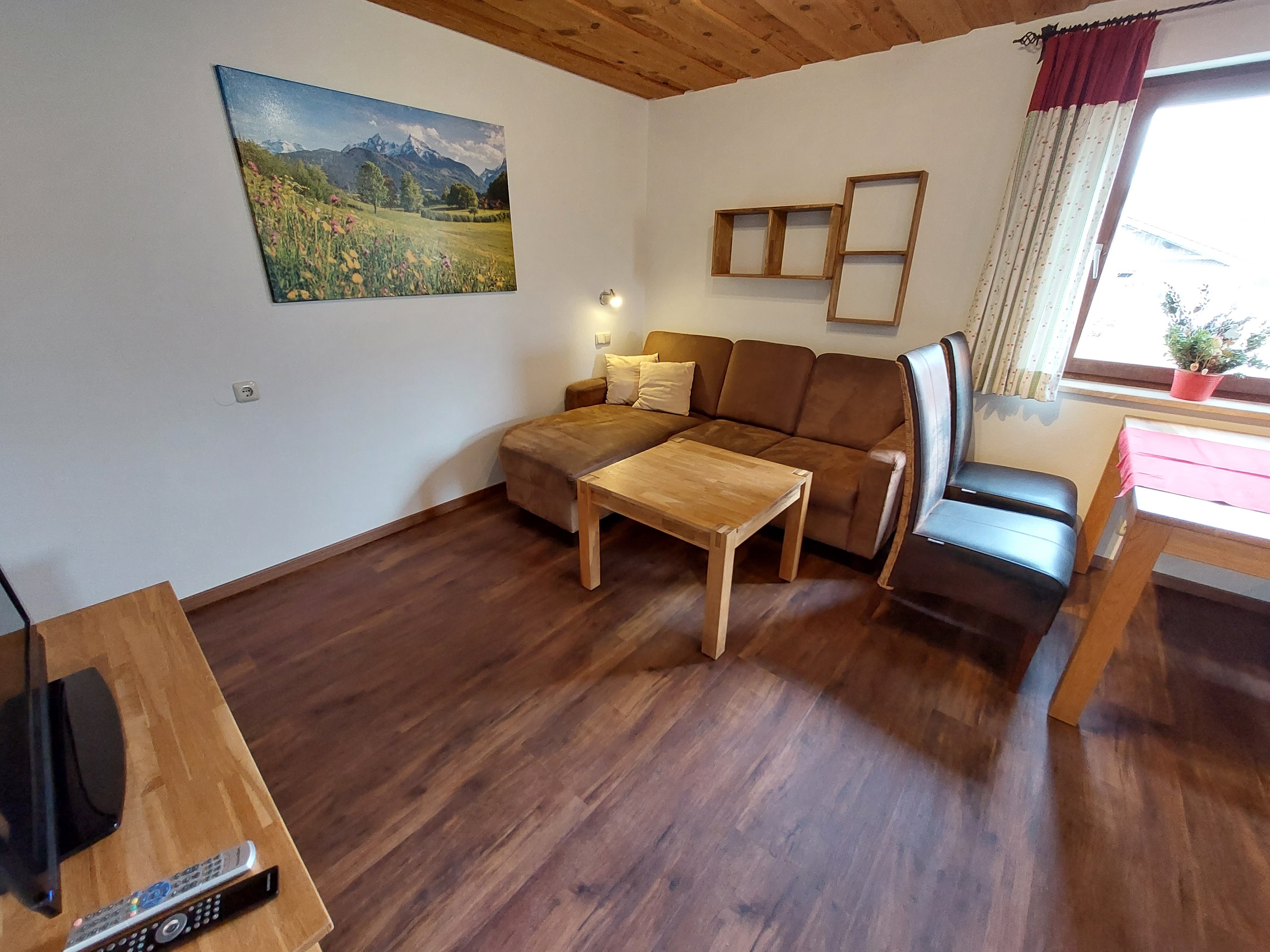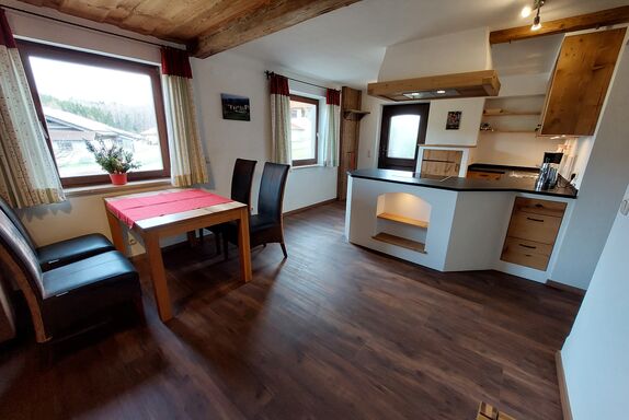 Die Ferienwohnung Stoißberg ist mit 4 Sternen klassifiziert und hat 51m². Geeignet für 1-3 Personen hat sie eine Wohnküche mit komplett ausgestatteter Küche, sowie Essbereich und gemütlichem Sofa mit Fernseher, 1 Schlafzimmer mit Doppelbett, 1 Schlafscheune, Bad mit ebenerdiger Dusche und WC. Direkter Ausgang auf die gemütliche Sonnenterrasse mit rustikaler Sitzecke, Sonnenliegen und herrlichem Bergblick.