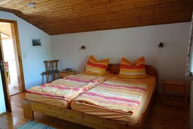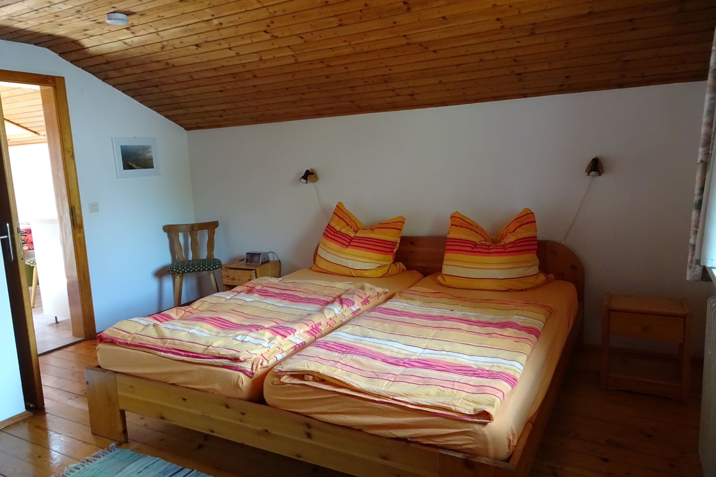 2. Etage-Mansarde, 50 qm, Wohnküche mit Küchenzeile und Essplatz, Schlafzimmer, Wohnraum mit TV und Radio, Dusche/Wc, Balkon mit Morgensonne, Blick zur Kampenwand.