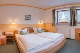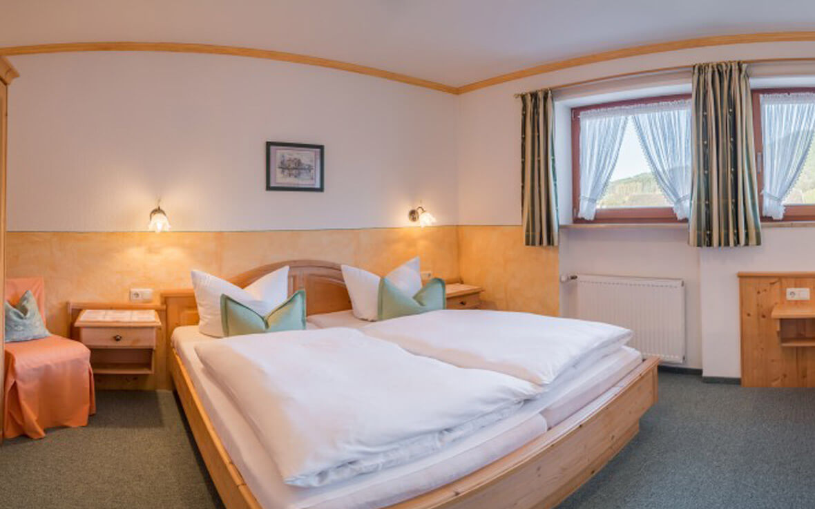 Es erwarten Sie gepflegte, gemütliche Ferienwohnungen bzw. Appartements in verschiedenen Größen, ausgestattet mit Dusche oder Bad/WC, Radio, Kabel-TV, Balkon mit Bergblick, Telefon und z. T. Kachelofen. Auf Wunsch Frühstücksbuffet mit Müsliecke. Ruhige zentrale Lage, 5 Gehminuten zum Ortszentrum. Parkplatz direkt am Haus, Tiefgaragenstellplatz auf Wunsch möglich. Gästehäuser inmitten einer großen Spiel- und Liegewiese. Loipen und Skilift ca. 300 m entfernt. Skiraum mit Schuhtrockner.
