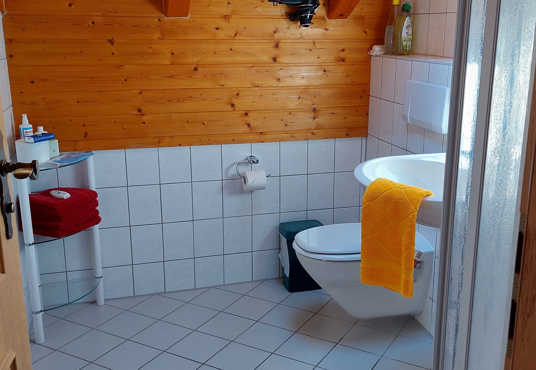 Dusche und WC mit Tageslicht, Haartrockner, Toilettenartikel, Hausschuhe. Möblierter Balkon, Wäscheständer, herrlicher Bergblick, ruhige Lage. Kostenfreies Internet, WLan. Kostenloser KFZ Stellplatz direkt am Haus.