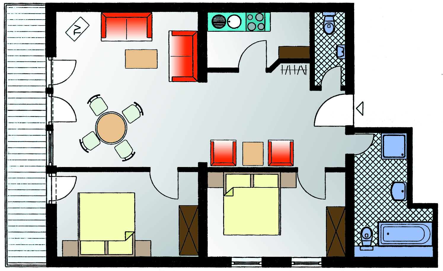 Ferienwohnungen Schausbreitner inkl. Chiemgaukarte - 10 Ferienwohnung Typ D 71 qm, Balkon, 2 Schlafzimmer, Wohnzimmer, max 4 P, WLAN