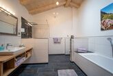 - Bad mit Badewanne, bodengleicher Dusche und extra Rainshower-Kopfbrause, Waschbecken, WC, Wandheizung als Handtuchtrockner, Kosmetikspiegel, Fön, Handtücher