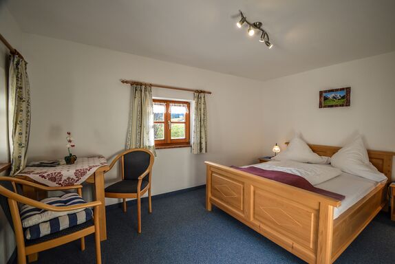 Bergbauernhof in sonniger, ruhigerLage mit herrlichem Gebirgsblick. Gästezimmer mit Du/WC, TV und teilweise Balkon. Im gemütlichen Aufenthaltsraum mit Kachelofen wartet ein Frühstücksbüffet mit Produkten aus der Region auf Sie. Die große Liegewiese vor dem Haus lädt zum verweilen ein. Gute Autozufahrt und Parkplatz am Haus. Gästekühlschrank in der ersten Etage vorhanden. Kinderermäßigung bis zu 15 jahren.