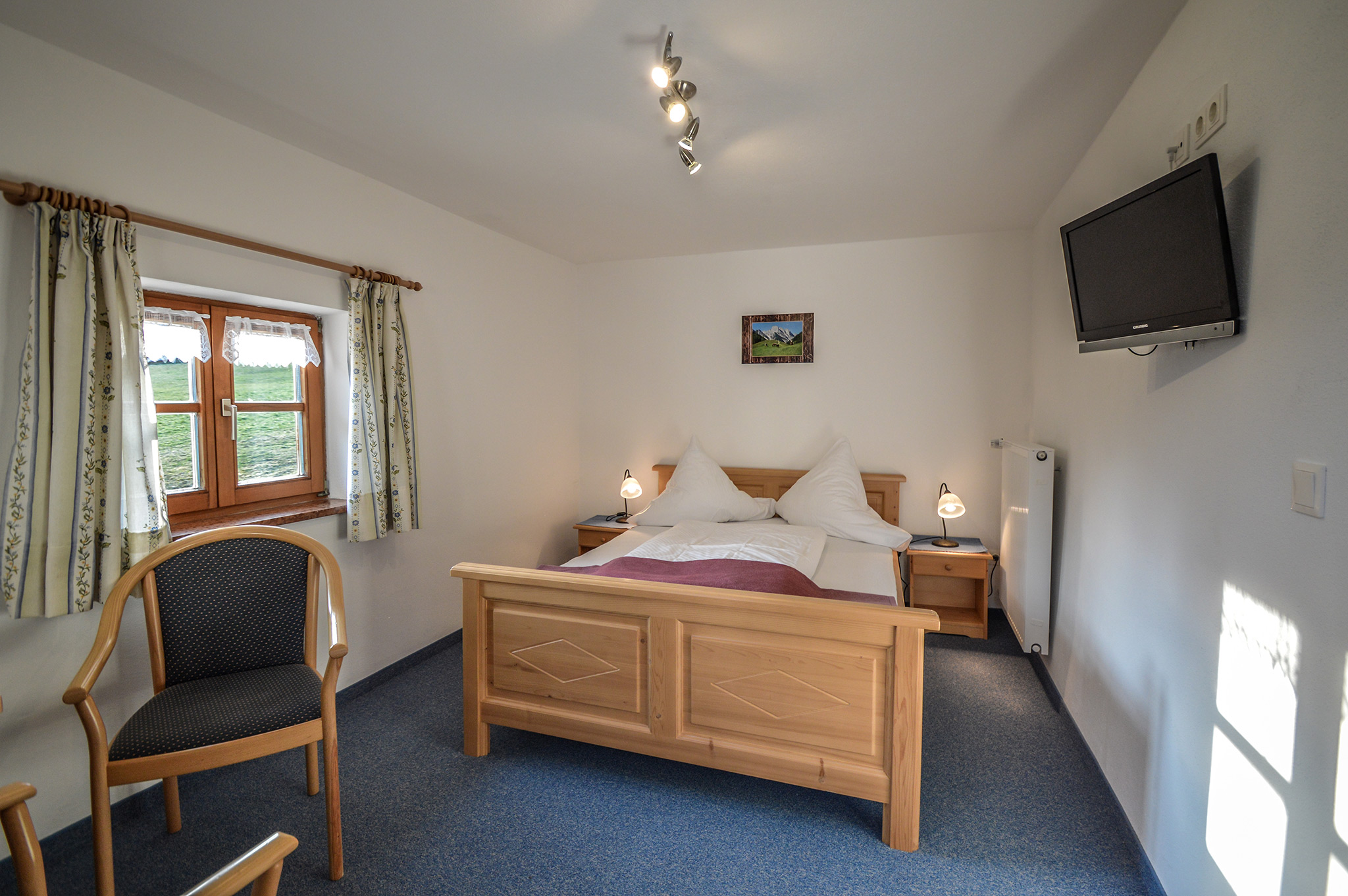 Alle unsere Zimmer sind mit Dusche und WC sowie einem Fernsehgerät ausgestattet. Die Einrichtung aus Massivholzmöbeln ist regionaltypisch gemütlich und rustikal.