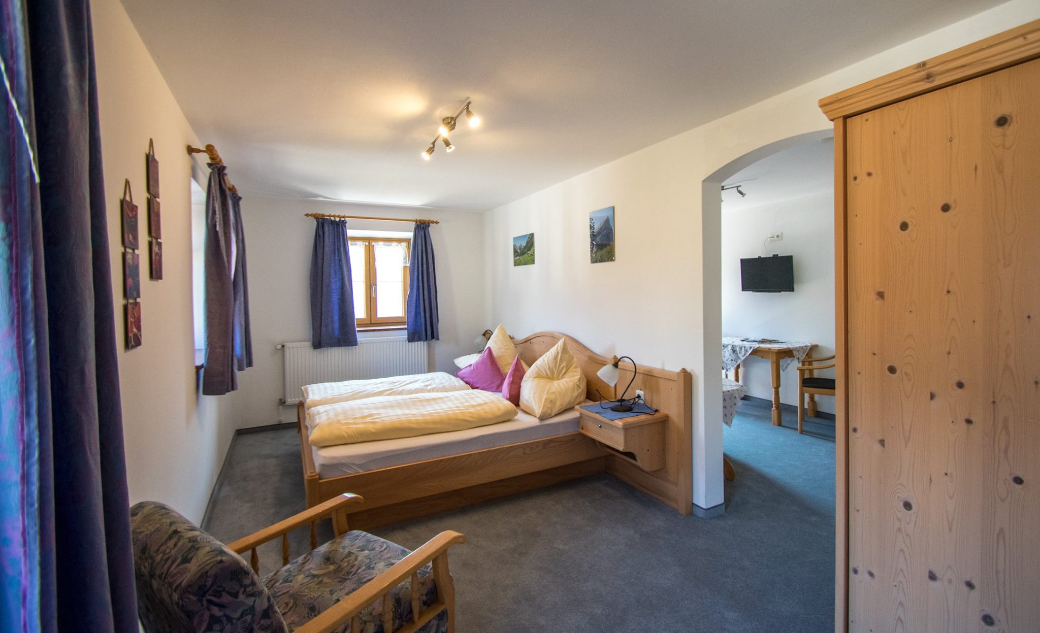 Bergbauernhof in sonniger, ruhigerLage mit herrlichem Gebirgsblick. Gästezimmer mit Du/WC, TV und teilweise Balkon. Im gemütlichen Aufenthaltsraum mit Kachelofen wartet ein Frühstücksbüffet mit Produkten aus der Region auf Sie. Die große Liegewiese vor dem Haus lädt zum verweilen ein. Gute Autozufahrt und Parkplatz am Haus. Gästekühlschrank in der ersten Etage vorhanden. Kinderermäßigung bis zu 15 jahren.