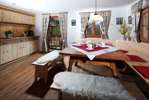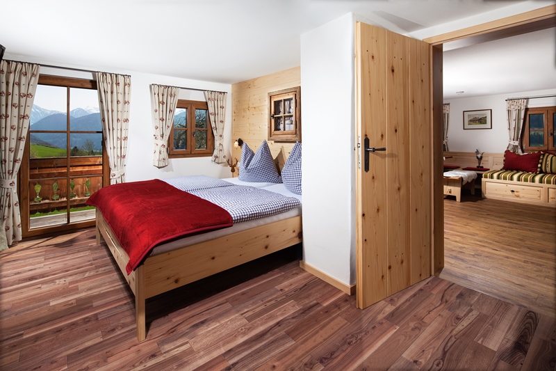 Unsere neue Ferienwohnung Holzstub´n im Obergeschoss bietet Platz für 4 Personen. Der Charme des alten Bauernhauses wie auch in den zwei Schlafzimmern mit eigener Dusche/WC bieten ein unvergessliches Urlaubsgefühl. Auf unseren Rundumbalkon kann man das Bergpanorama und die grünen Wiesen so richtig genießen. Ideal für Ruhesuchende und Naturliebhaber. Bei Belegung mit zwei Personen steht Ihnen ein Schlafzimmer zur Verfügung, das zweite Schlafzimmer kann gegen Aufpreis mitbenutzt werden. Zu der Ferienwohnung kann man für die fünfte und sechste Person ein Doppelzimmer dazu mieten.