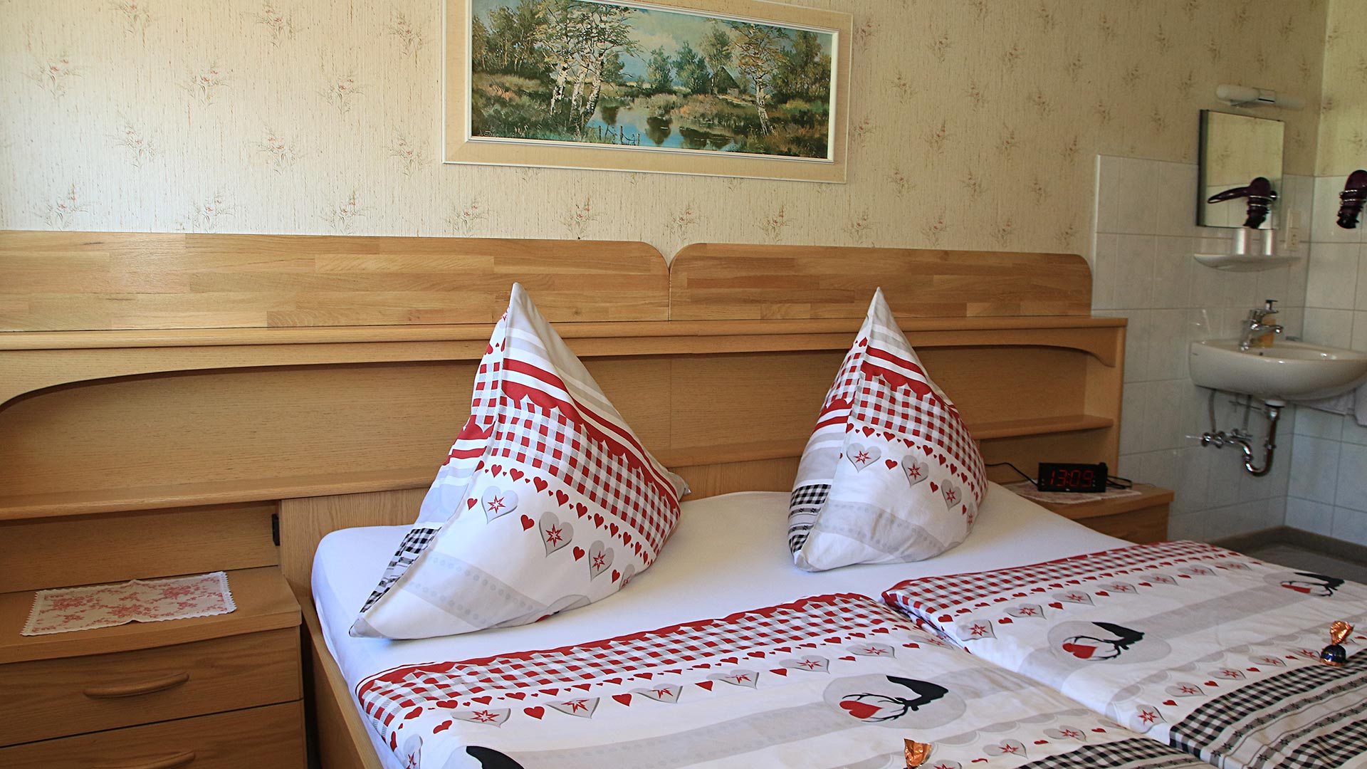 Das Doppelzimmer für 2-3 Personen Wimbachgrieß ist komplett mit Dusche und WC, Kabel TV und Radiowecker ausgestattet. Auf Wunsch bieten wir Ihnen ein Zusatzbett für das Zimmer Wimbachgrieß an. Ebenso besitzt das Zimmer eine Sitzecke und eine Zusatzliege. Die Grundfläche des Richtung Westen ausgerichtet Obergeschoss-Zimmers beträgt 20 qm.