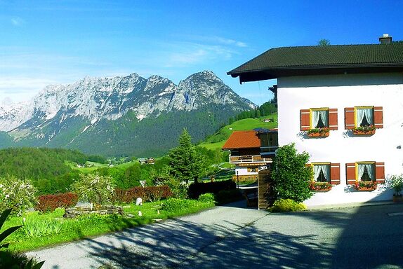 Willkommen im Haus Urban Haus Urban liegt auf sonniger Südseite hoch über dem Ramsauer Tal, gegenüber der herrlichen Bergwelt des Berchtesgadener Landes. Der Watzmann ist mit 2713 m der höchste Gipfel der imposanten Runde. Der wuchtige Hochkalter mit dem Blaueisgletscher und die einsamen Gipfel der Reiteralpe sind nicht weniger beeindruckend. Für den kinderfreundlichen Urlaub stellen wir Ihnen gerne einen Kinderhochstuhl oder ein Kinderbett zur Verfügung. Zum Spielen sind Schaukel und Rutsche vorhanden. Unseren Gästen stehen im Aufenthaltsraum ein Gästekühlschrank, Teller und Besteck zur Verfügung. Getränke können Sie jederzeit in unserem Hause erwerben. Für Fahrräder und Motorräder können wir Ihnen eine Garage zur Verfügung stellen.
