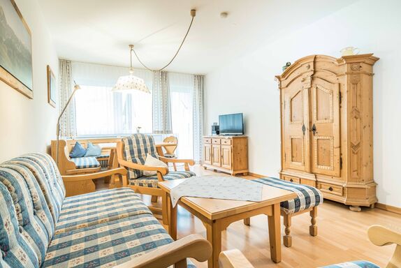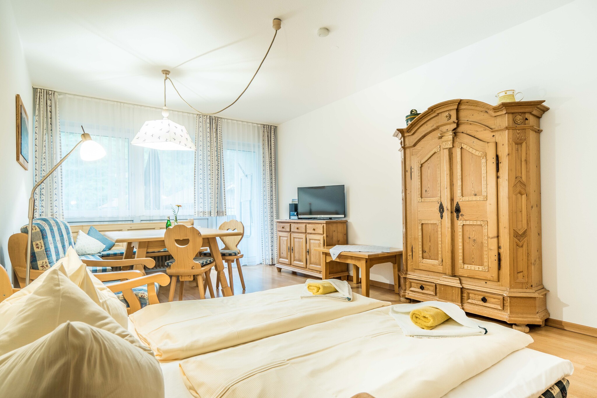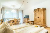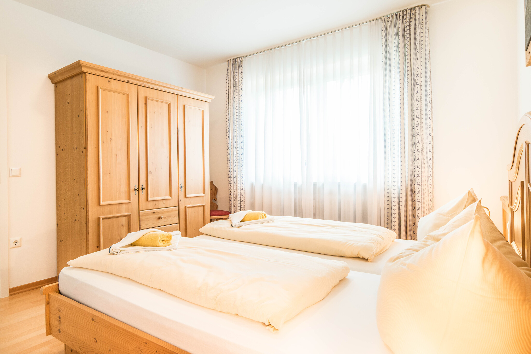 Die 2-Zimmer-Ferienwohnung - D6 - Klassik liegt im 1. Obergeschoss des D Hauses und bietet Platz für 1-4 Personen. Sie verfügen im Schlafzimmer über ein bequemes Doppelbett (ca. 1,8 x 2 m). Die Couch im Wohnzimmer können Sie zu einer Schlafcouch für zwei Personen (ca. 1,8 x 1,9 m) umbauen. Über den Keller haben Sie einen überdachten Zugang zum Schwimmbad und Wellnessbereich. Die Ferienwohnung verfügt über ein eigenes Bad mit Badewanne, Waschbecken und Toilette. In der Küche sorgt eine Geschirrspülmaschine für zusätzlichen Komfort. Die Wohnung ist Allergiker-freundlich, denn auf Teppichböden wurde verzichtet. Haustiere sind in dieser Wohnung auf Anfrage gestattet. Alle Ferienwohnungen haben gratis WLAN, einen Flachbild-TV, einen eigenen Tiefgaragen-Stellplatz und eine voll eingerichtete Küche mit Geschirrspüler.