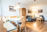 Die 2-Zimmer-Ferienwohnung - E4 - Klassik liegt im 1. Obergeschoss des E Hauses und bietet Platz für 1-4 Personen. (Bei einer Belegung mit 4 Personen werden die Kriterien der 3-Sterne-Klassifizierung nicht erfüllt). Sie verfügen im Schlafzimmer über ein bequemes Doppelbett (ca. 1,8 x 2 m). Die Couch im Wohnzimmer können Sie zu einer Schlafcouch für zwei Personen (ca. 1,8 x 1,9 m) umbauen. Vom Balkon haben Sie einen wundervollen Blick auf das Kaisergebirge. Über den Keller haben Sie einen überdachten Zugang zum Schwimmbad und Wellnessbereich. Die Ferienwohnung verfügt über ein eigenes Bad mit Badewanne, Waschbecken und Toilette. Die Wohnung ist Allergiker-freundlich, denn auf Teppichböden wurde verzichtet. Haustiere sind in dieser Wohnung auf Anfrage gestattet. Alle Ferienwohnungen haben gratis WLAN, einen Flachbild-TV, einen eigenen Tiefgaragen-Stellplatz und eine voll eingerichtete Küche mit Geschirrspüler.