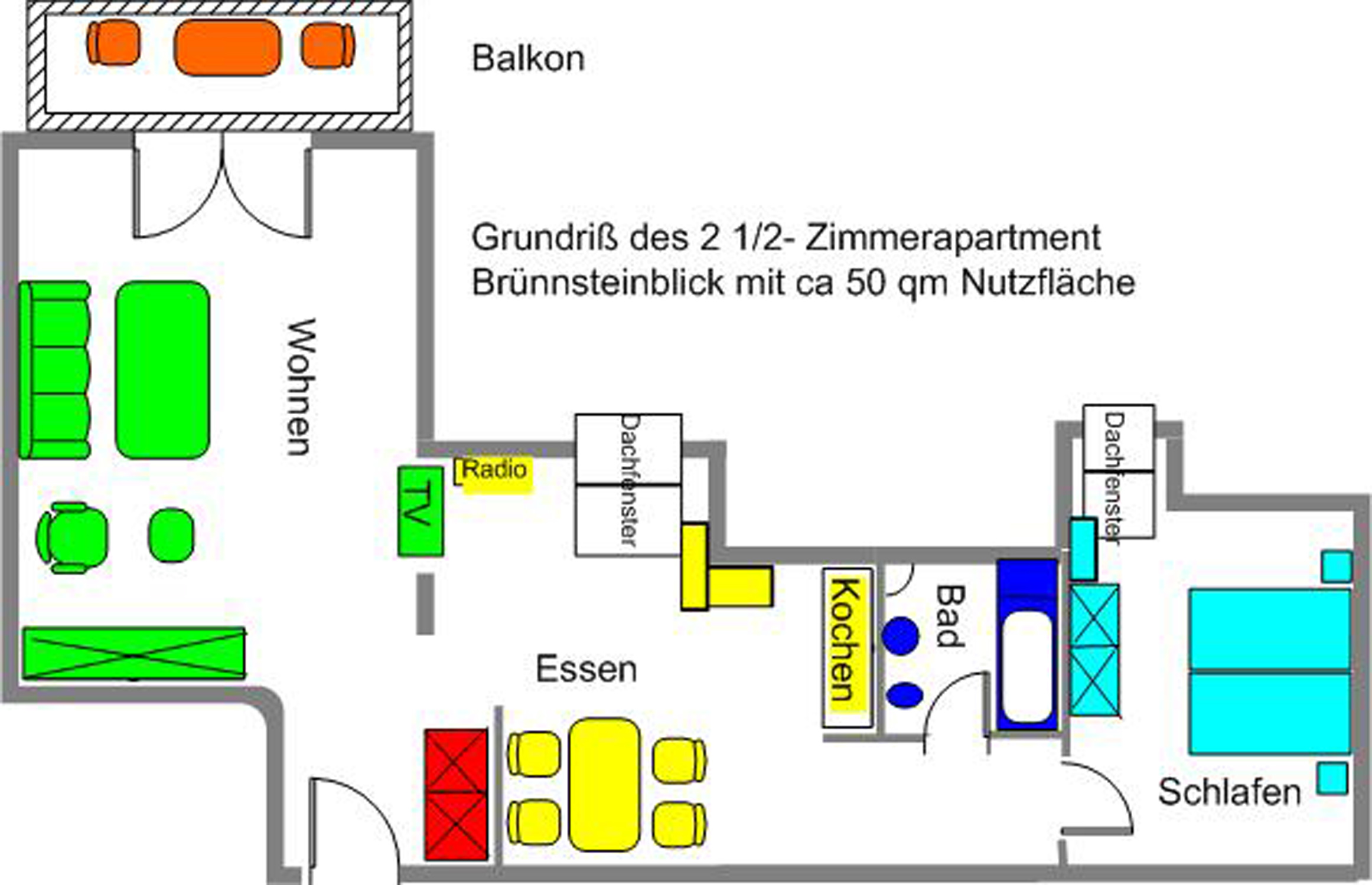 Ferienwohnung Brünnsteinblick Kranzhorn - 2 1/2- Zimmer Ferienwohnung Brünnsteinblick, 50qm, 1 Schlafzimmer, Balkon