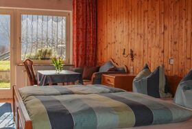 Das gemütlich eingerichtete Doppelzimmer verfügt über ein Doppelbett (2x 90x200cm) eine Sitzecke mit Satellitenfernseher, kostenlosem WLAN und einem Kühlschrank, sowie einem Badezimmer mit WC/Dusche.