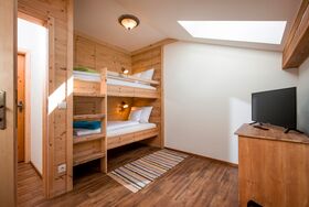 DTV-klassifizierte ****Sterne Ferienwohnung, im 2. Stock mit eigenem Aufgang ist wie folgt ausgestattet: * 1 Schlafzimmer mit Doppelbett und Einzelbett * 1 Schlafzimmer mit einem Einzelbett * 1 Schlafzimmer mit 2 Betten * 1 Schlafzimmer mit einem Stockbett * Babybett, Hochstuhl, Wickelauflage auf Anfrage * 1 separater Wohnraum mit Eckbankgruppe * Küche mit großem Esstisch, Küchenausstattung: 4-Platten Herd mit Backofen, Geschirrspülmaschine, Kaffeemaschine, Wasserkocher, Toaster, sowie Ess- und Kochgeschirr * Spül- und Geschirrtücher * Dusche/WC und zusätzlich ein separates WC * Haarfön, Wäscheflügeltrockner * Flachbild HD Fernseher, HiFi Anlage * zusätzlicher Fernseher in einem der Schlafräume * Balkon mit Tisch und zwei Stühlen