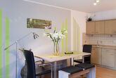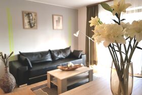 Die Ferienwohnung verfügt über einen gemütlichen Wohnraum mit einer gut ausgestatteten Küchenzeile und ein separates Schlafzimmer. Das komfortable Doppelbett (2 x 2 m) mit zwei getrennten Matratzen garantiert einen erholsamen Schlaf und sorgt für Ihr Wohlbefinden.