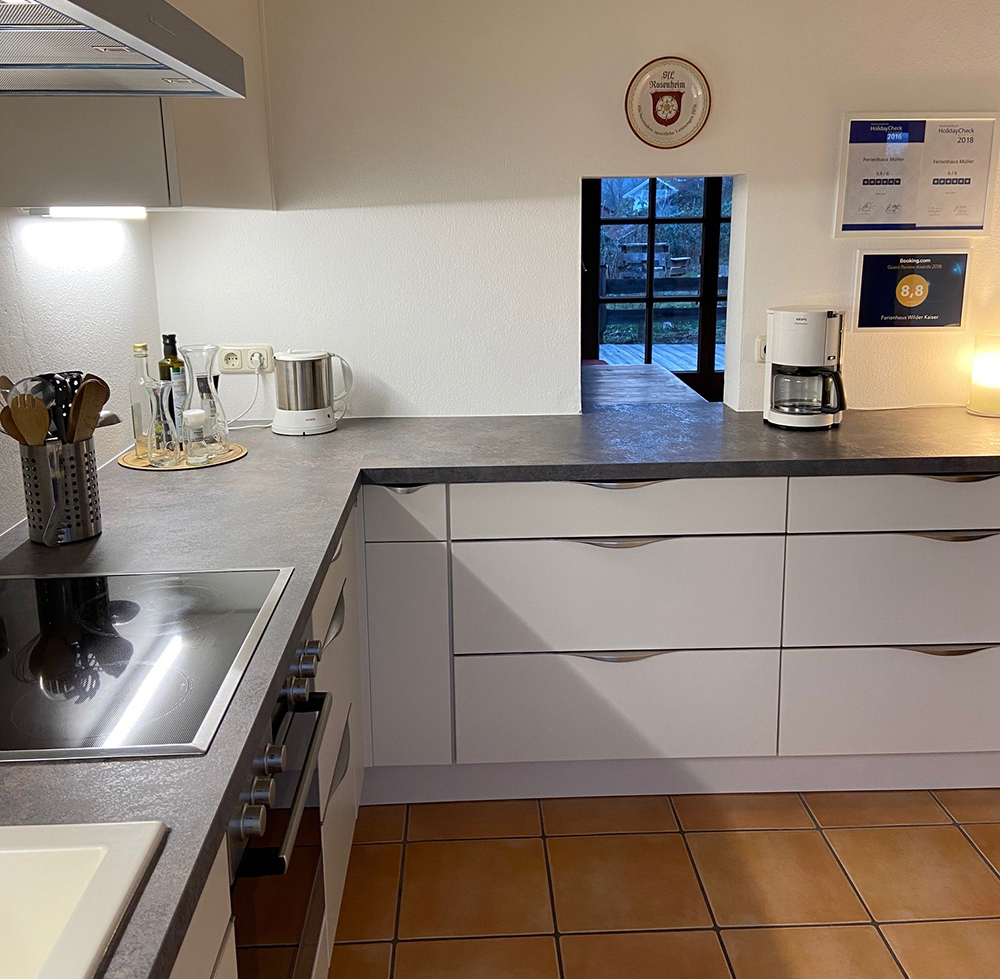 In der neuen geräumigen Küche lässt es sich hervorragend kochen und in der Abendsonne lädt die große Holzterrasse zu einem gemütlichen Sundowner ein. Im Erdgeschoss WC; Wohnzimmer mit geräumiger Eckbank und gemütlichem Sofa. Im 1. Stock Schlafzimmer mit Doppelbett und Balkon; 2. Zimmer mit drei Betten; Marmorbad mit Dusche, Badewanne und WC. Hobbyraum als zusätzlicher Aufenthaltsraum. Überdachter Carport. Auch wir nutzen das Ferienhaus mit unserer Familie. Im Sommer zum Radfahren am Inn und nach Kufstein, zum Mountainbiken in die Berge direkt vom Haus aus. Die Skigebiete Wilder Kaiser Brixental mit den Sommerattraktionen Hexenwasser in Söll und Ellmis Zauberwelt in Ellmau sind 15-20 Autominuten entfernt. Ideal, um mit Kindern die Natur und Bergwelt zu erleben. Mindestaufenthalt: 5 Nächte, Belegung: 1-5 Personen.
