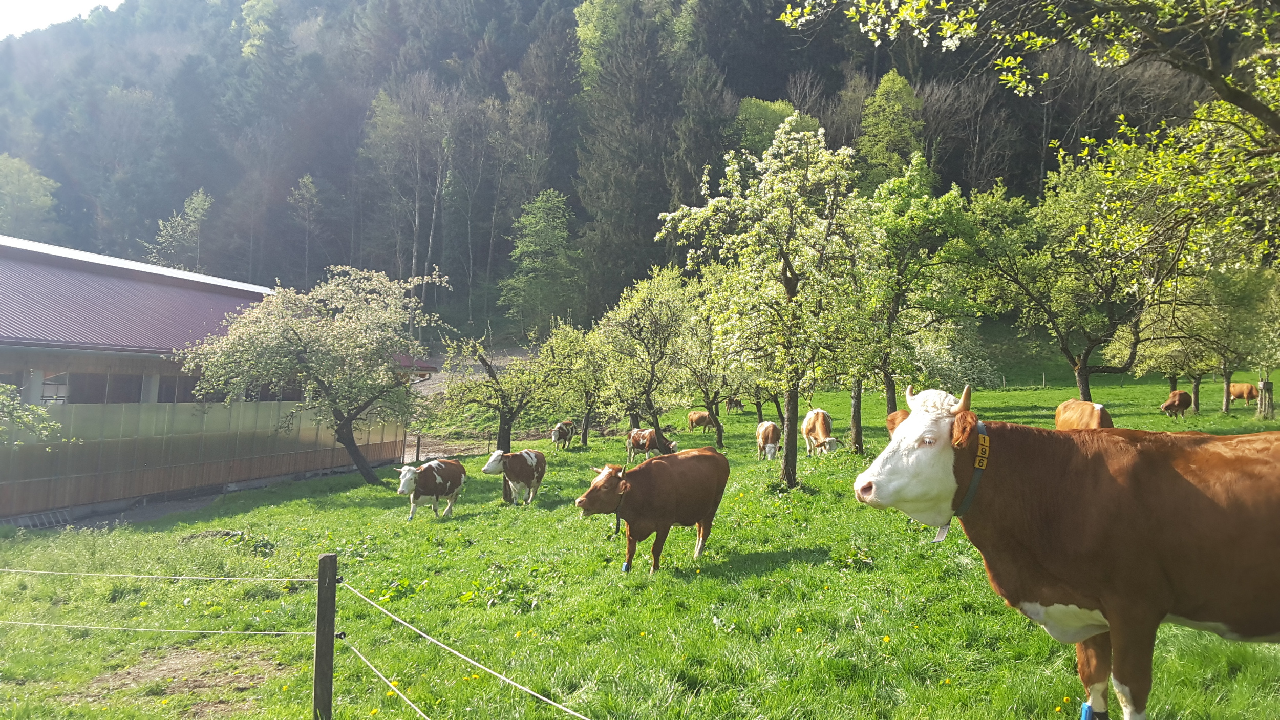 Auf unserem Naturland zertifizierten Betrieb wird Nachhaltigkeit großgeschrieben; so wurde beim Bau viel eigenes Tannenholz verwendet, geheizt wird mit hofeigenem Brennholz, der Strom wird mit einer CO 2 neutralen Wasserkraftanlage erzeugt.