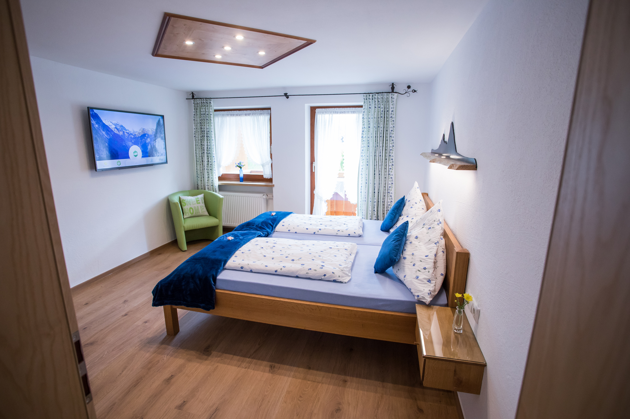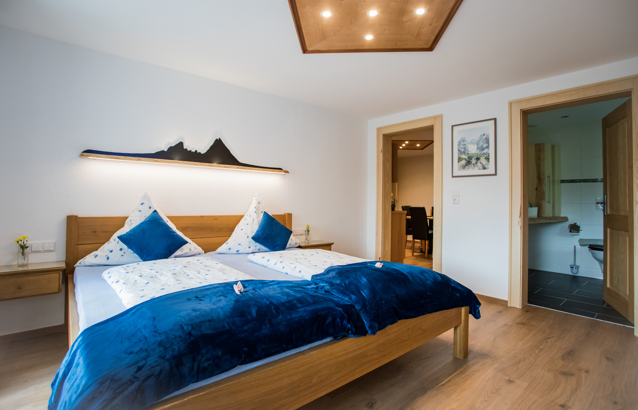 Eine Ferienwohnung für 2 Personen im ersten Stock, Südlage, 40 qm, modern und komfortabel eingerichtet. Vom Balkon aus haben Sie einen wunderschönen Panoramablick auf die Berge, wo Sie die Natur genießen können.