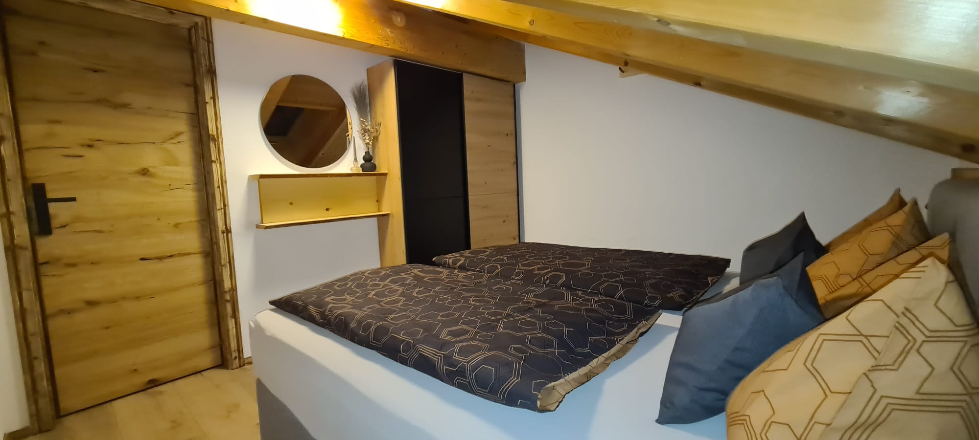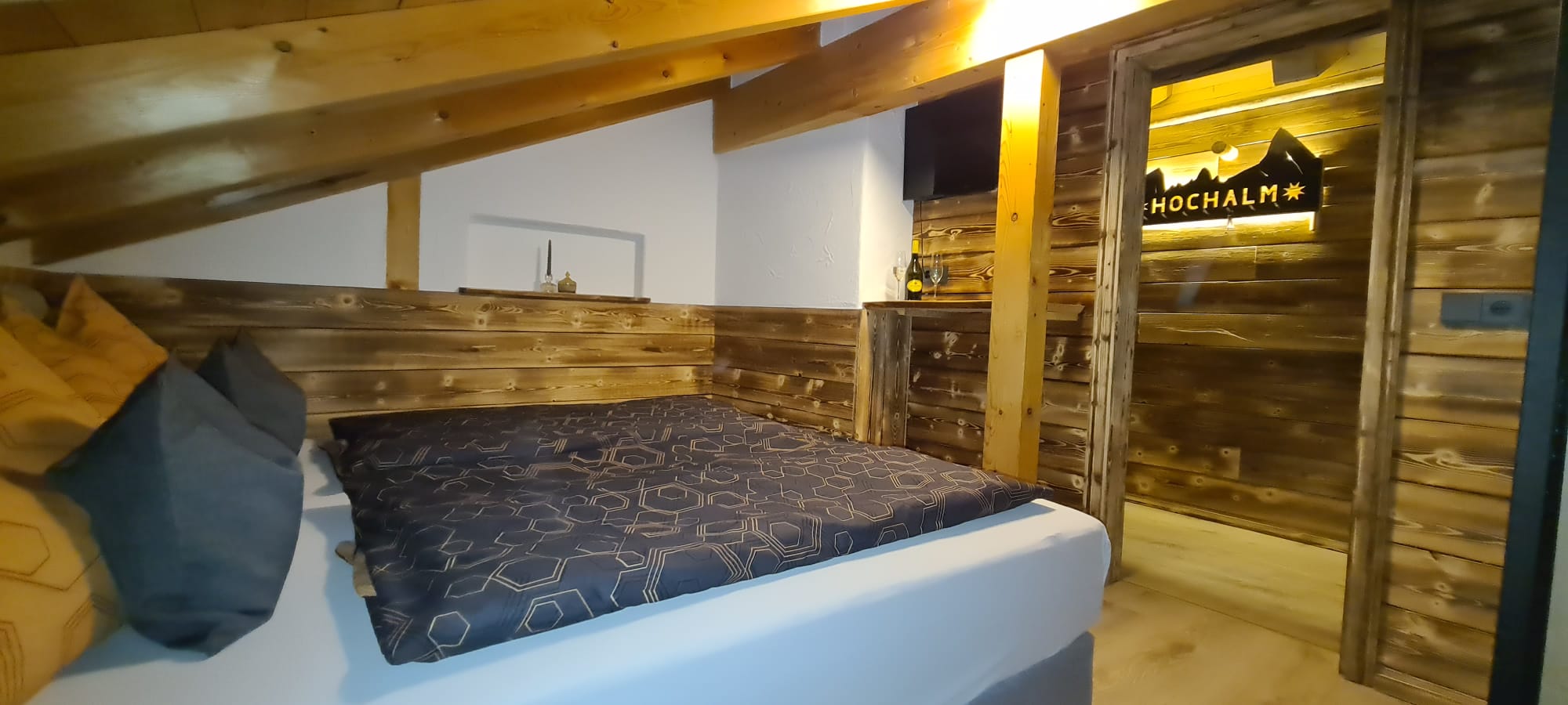 Die Wohnung Hochalm befindet sich im 2.Obergeschoss unterm dem Dach. Die hoch Mansardenwohnung ist sehr großzügig geschnitten und bietet mit ihren 90qm jede Menge Platz für 1-4 Personen. Zwei Schlafzimmer versprechen mit ihren Boxspringbetten einen erholsamen Schlaf. Die Küche ist voll ausgestattet inclusive einem Kaffeevollautomat. Bad und WC befinden sich mitten in der Wohnung gebaut in Form einer Almhütte. Wir haben beim Bau der Wohnung all unser Herzblut reingesteckt, sehr auf Details geachtet und hoffen mit dem Ergebnis euch damit mitten ins Herz getroffen zu haben!
