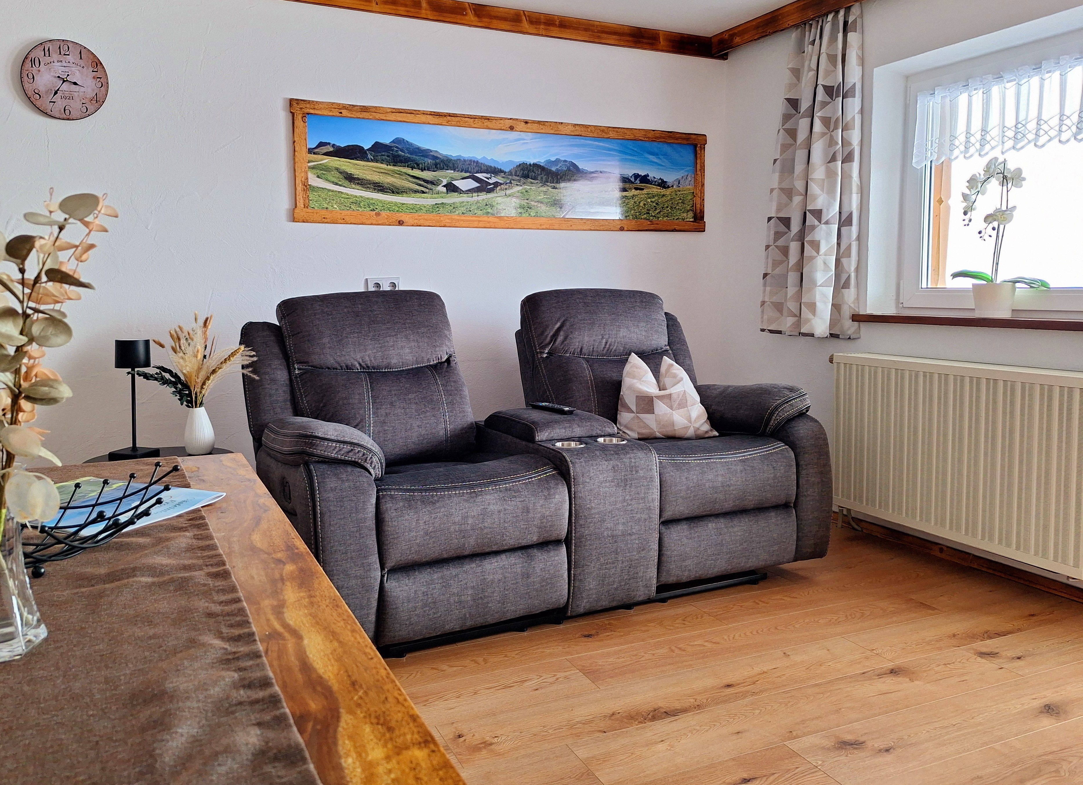 Urig und liebevoll mit altem Holz (Schreinerarbeiten) renovierte und neu gestaltete Nichtraucher-Ferienwohnung. Die Wohnung verfügt über ein Wohnzimmer mit TV, Heimkinosessel, Safe, Ess- und Sitzecke, einer separaten kleinen Küche, einem separaten Schlafzimmer sowie Dusche/WC und Diele. Die gesamte Wohnung ist mit allergikerfreundlichen Fußböden ausgestattet und vom Balkon aus haben Sie einen herrlichen Blick auf das gesamte Bergpanorama.